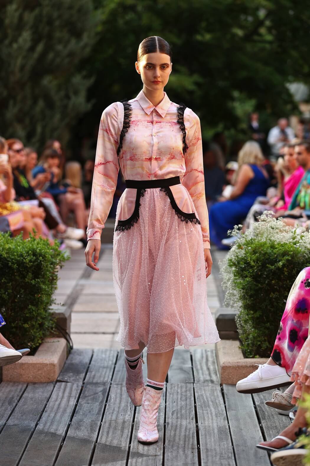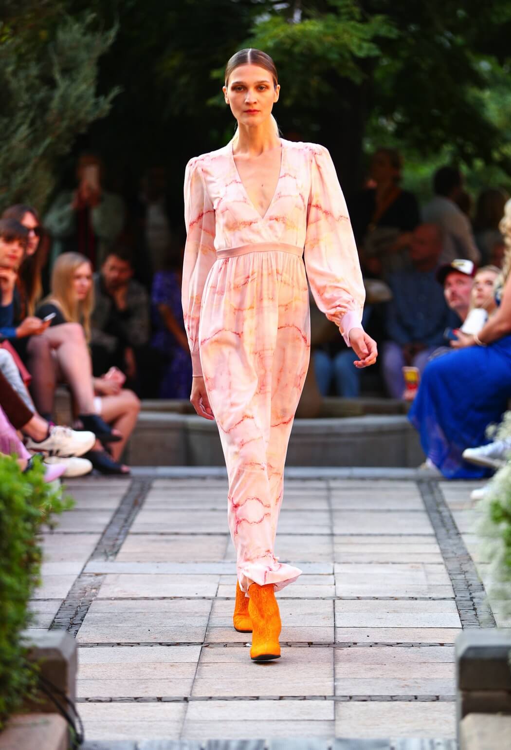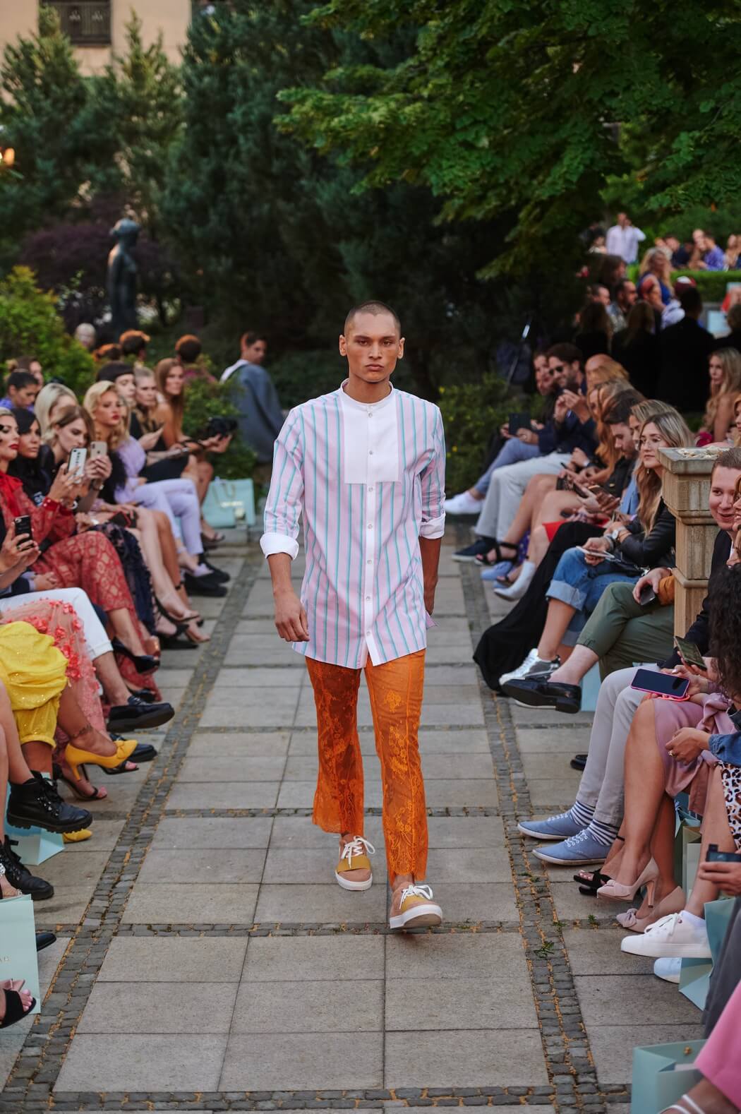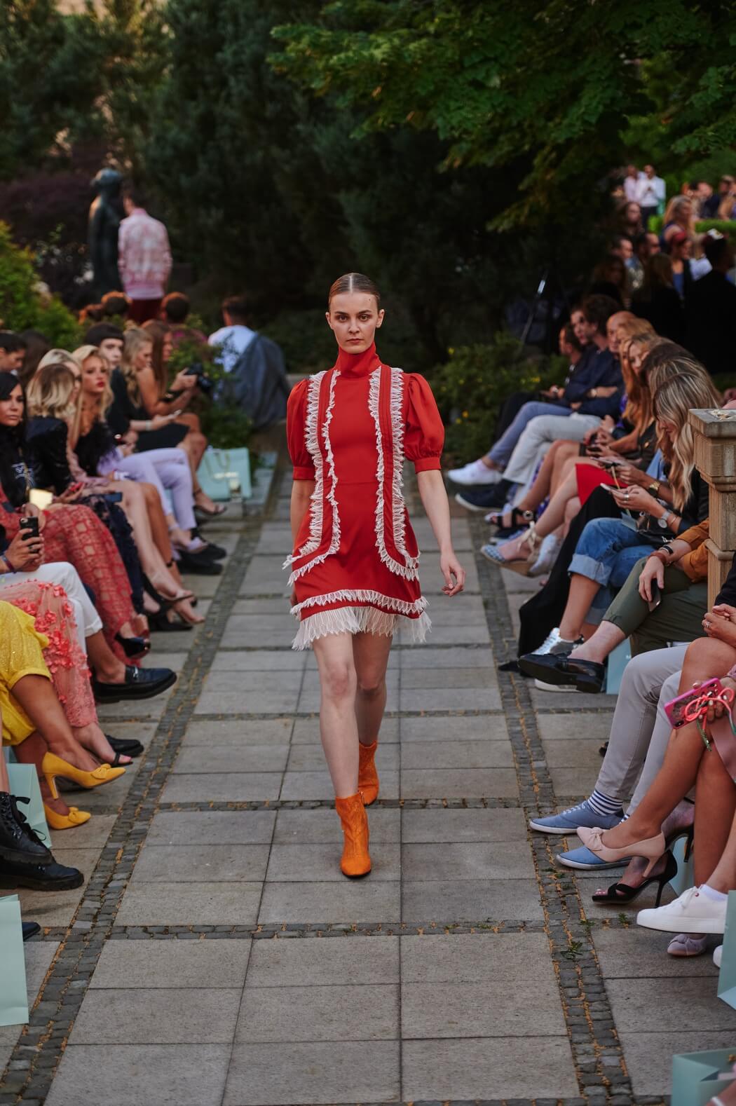 #BerlinFashionWeek – Designer Marcel Ostertag unveiled his new Spring/Summer 2020 collection: LOVERS! Silk dresses, light blouses, airy caftans, swinging skirts and intoxicating colour concepts flow together with your own prints and a lot of love. Small, playful pearl embroideries glide down pastel dresses, romantic and playful, without forgoing clear lines. The designer has been playing with contrasts since his first collection.