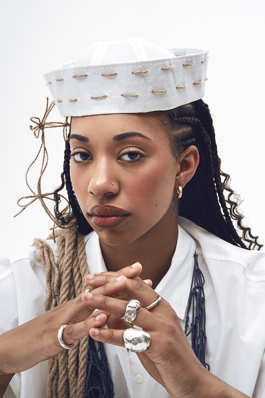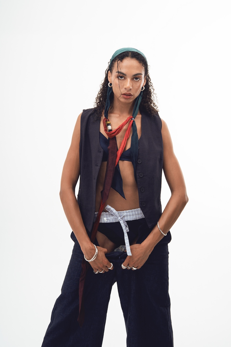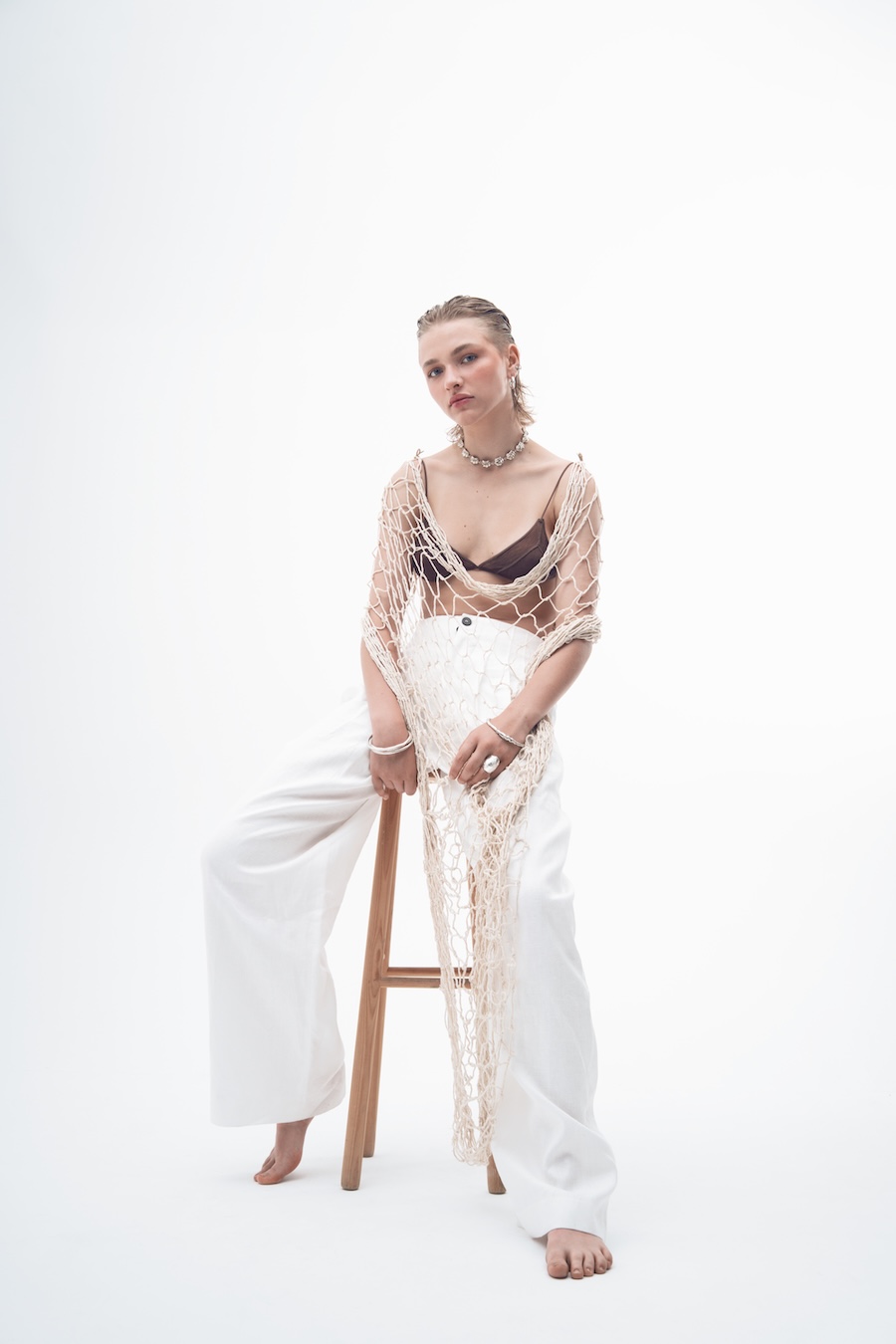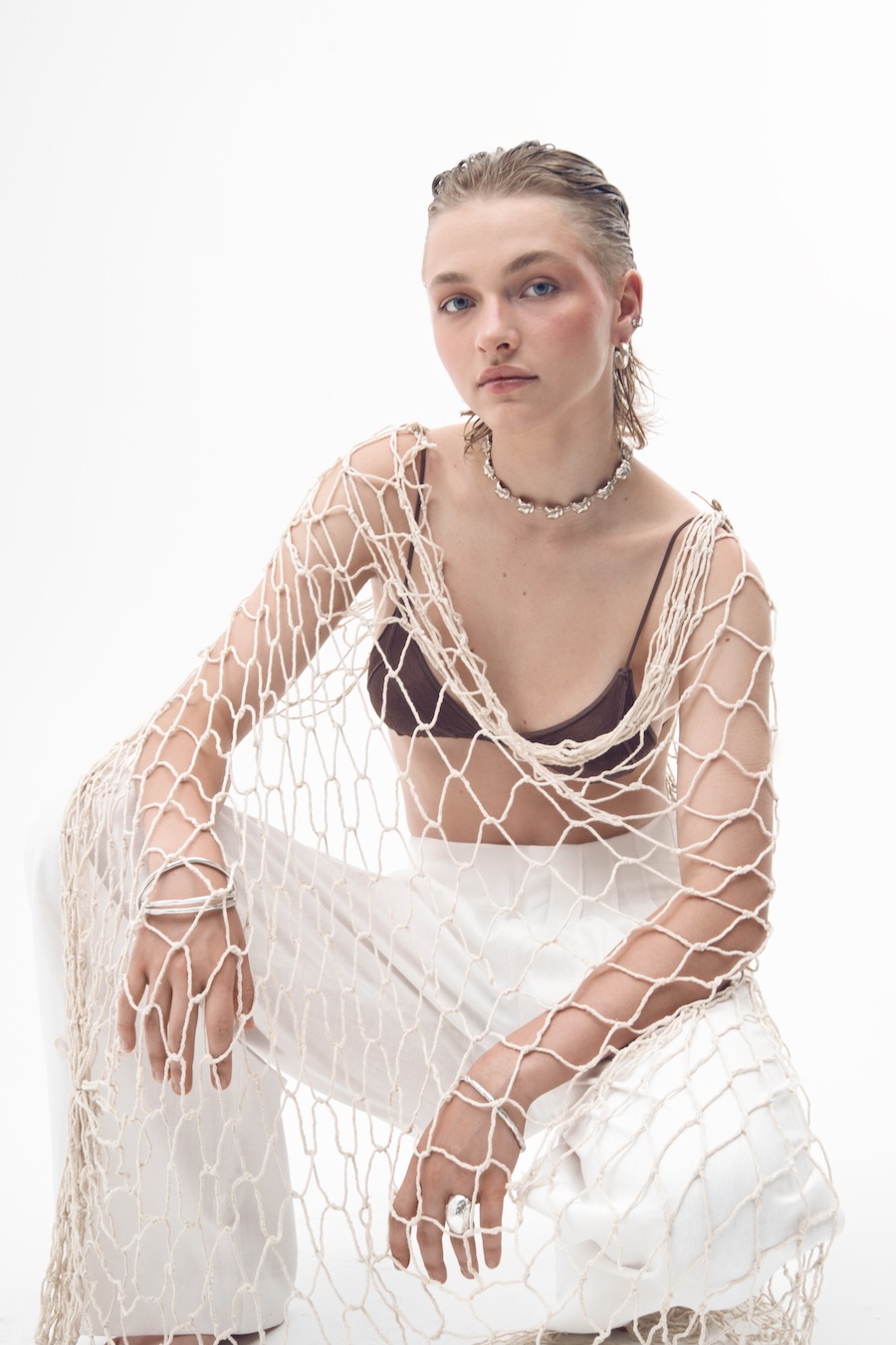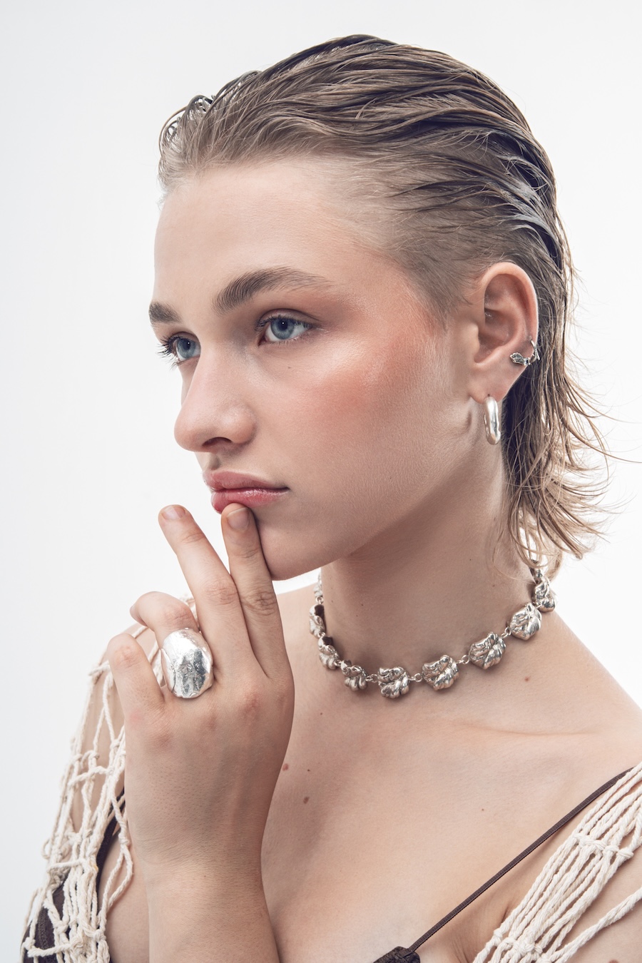 “The use of jewellery, especially earrings, among historical pirates is a fact supported by various sources. These ornaments served multiple purposes, from symbolising achievements and experiences to acting as protective amulets or even economic resources in difficult situations. However, the image of pirates overloaded with jewellery is more a myth fueled by popular culture than a historical reality. In this editorial, we draw inspiration from both the uniforms worn by sailors throughout history and the materials and surroundings that have shaped them, such as chains, fishing nets, and knots. It is an ode to the sea.”