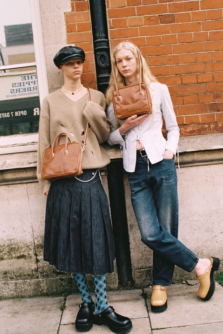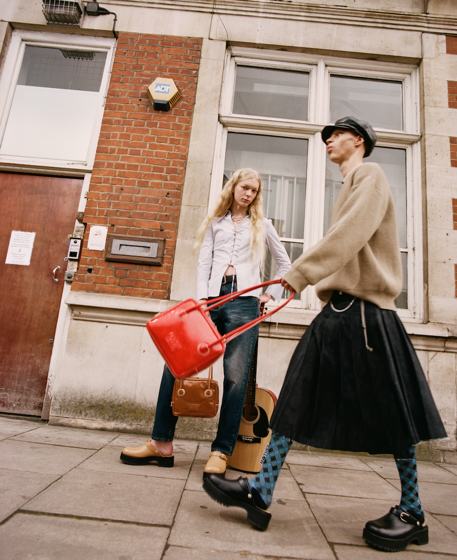 The classic and grounded aesthetic of the brand’s pieces does not contrast with the sceneries presented in the shoot – on the contrary, it complements the looks of its heroes, reminding us that Margesherwood designs are timeless. On the run to the university or getting ready for a night out, the brand’s hero/ine would be sure their handbag fits seamlessly for the occasion.