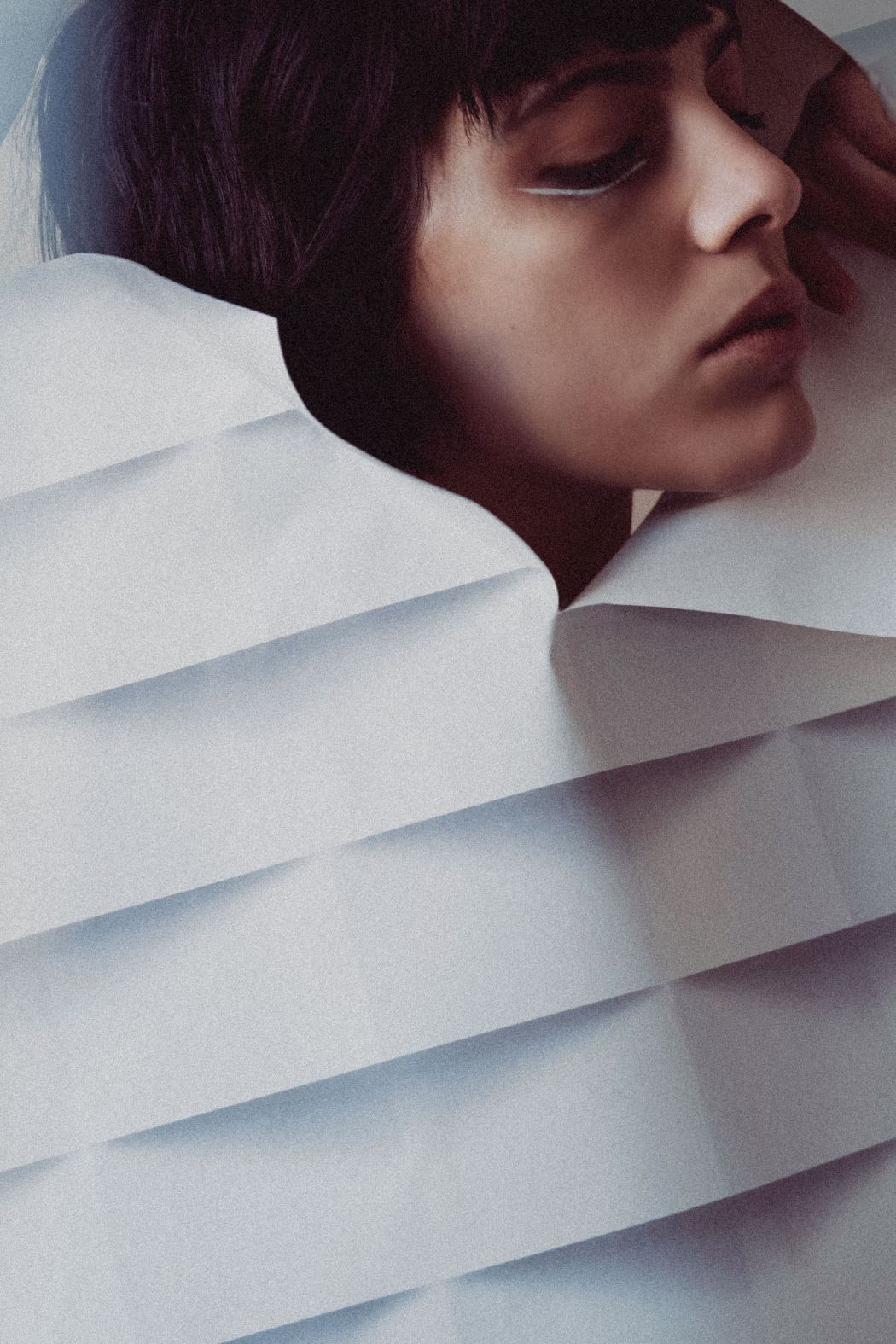 A KALTBLUT exclusive womenswear editorial. Photography by Arnaud Ele. Creative direction, styling and set by Laura Knoops. Model is Margot Davy, signed at Elite Paris and Woman management NYC. Make up by Eva Louis. Fashion by Drône and Aldwin Teva William.