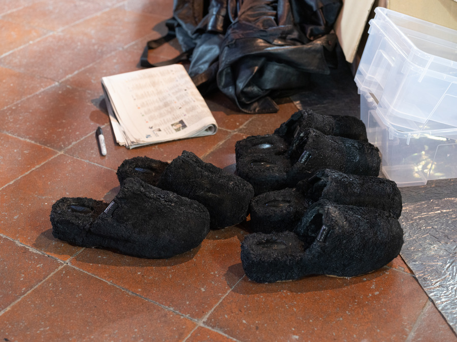 Lifestyle brand UGG® was seen in the Martine Rose Fall/Winter 2023 fashion show during Pitti Uomo in Florence, Italy. Martine Rose reimagined one of the UGG® brand’s outdoor slippers by hand-dying its signature sheepskin.