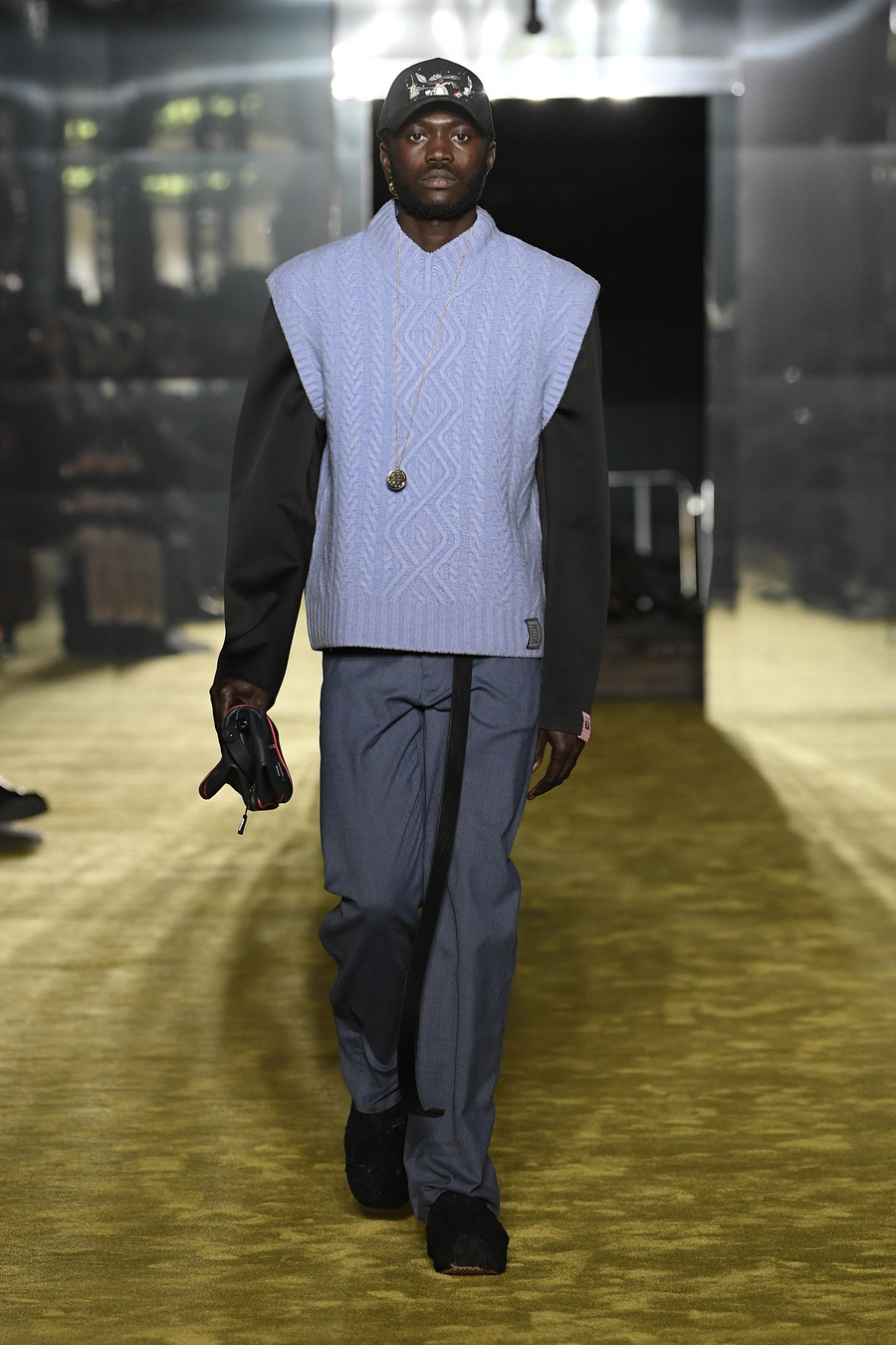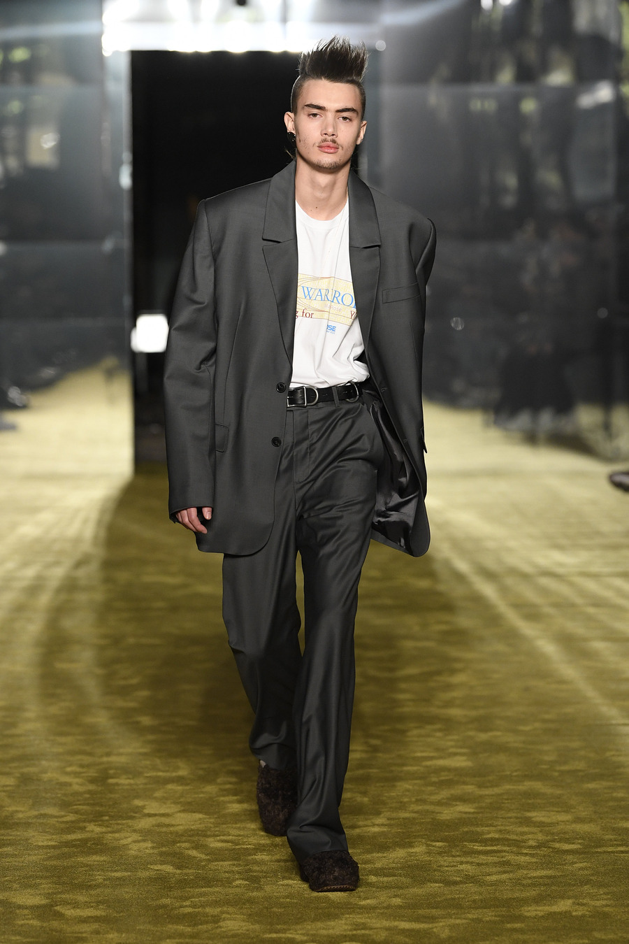 The brand’s characteristic silhouette was interpreted through the spirit of club-era customization – which derived from Rose’s homage to the impact of this culture in a presentation that evokes the era’s louche nightclubbing environment.