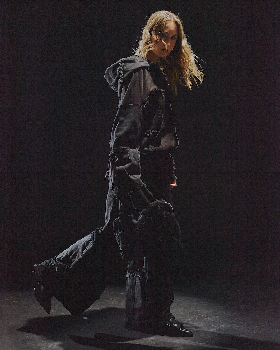 A KALTBLUT exclusive fashion editorial. Photography by Jan Neumann. Hair and makeup by Christina Mouratides. The models are Malik Diène, Fabienne Linnenschmidt and Momo. The only brand used is Sina Bock´s Sin Studio. A Berlin-based fashion label, founded in 2024, that focuses on upcycling.