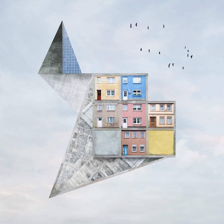“I create collages. I take pictures of houses, technical objects, people, and basically anything I find interesting, and juxtapose them. I adjust the individual images, cut them out, and give them a different color. The result is a structure that is like an independent being. Sometimes it‘s beautiful, sometimes it‘s awkward or even a little eerie. The individual elements are in tension with each other. They are like rhymes in a short visual poem.