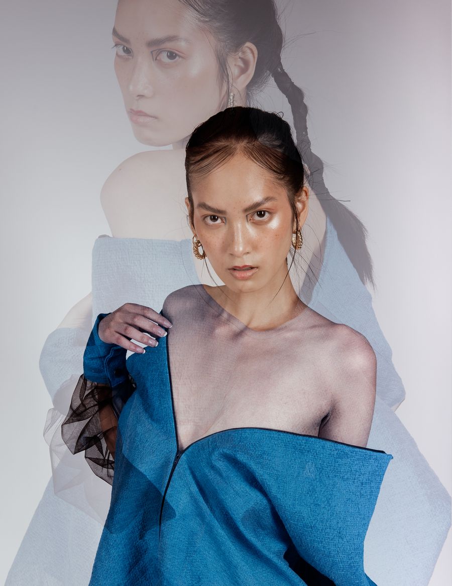 “The editorial ‘Me & Myself’ is inspired by bringing art back into the everyday life using fabrics and reinventing wearable pieces. Merging beauty, functionality and sustainability by introducing pieces that were deconstructed and reinvented into brand new outfits. In the same way we can deconstruct ourselves and build up a new personality.