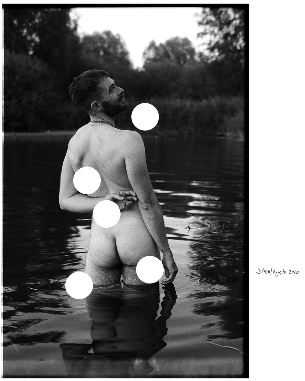 “During this pandemic, I had time to go through some old negatives. Among them, I found this series of portraits of several friends that I took at the lakes around Berlin between 2019 and 2020. I remember that we sat naked on the grass and discussed censorship. I remember the peacefulness and quiet of those days and I remember wondering whether it was an effect of some undefined bashfulness everybody felt for being naked.