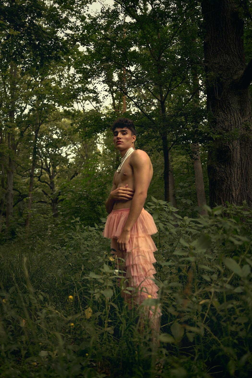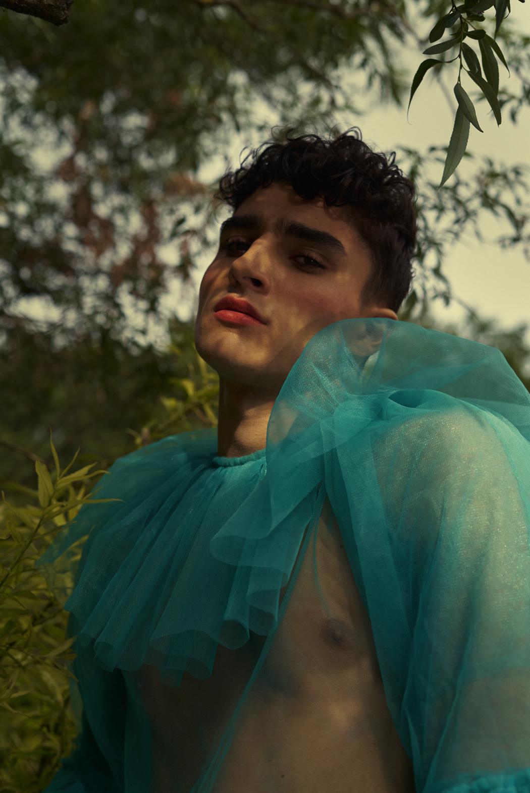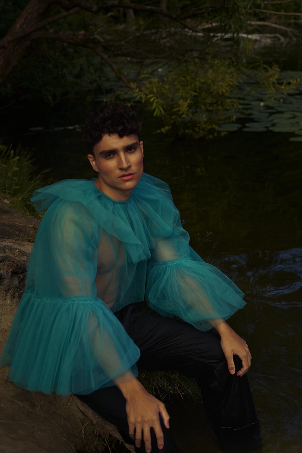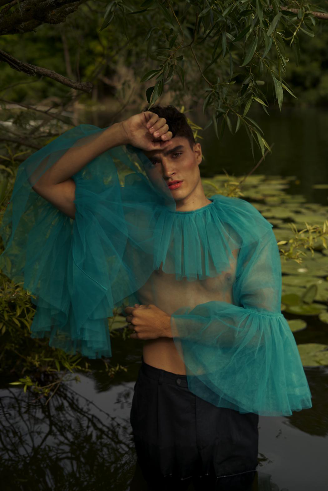 “It’s about a young man that is liberating himself from toxic masculinity. He starts his journey in the water, purifying himself and letting go of the old stereotypes he was embodying. Walking through the forest he starts to get in touch with his real self, learning self-love, exploring masculine fragility but also confronting his demons, until he finds his way out and reaches the sky, where he can finally be free and start accepting and being himself. This is not only the story of a young man but it is the story of many of us. Letting go of what is holding us back to be our true selves, learning self-love and self-acceptance, is a never-ending process but it’s worth the journey.”