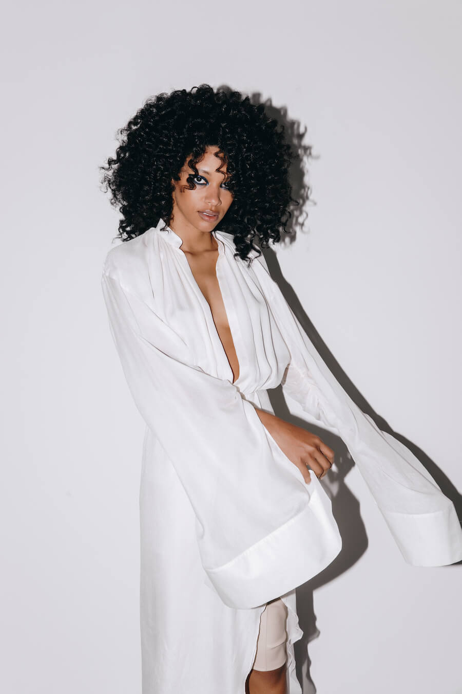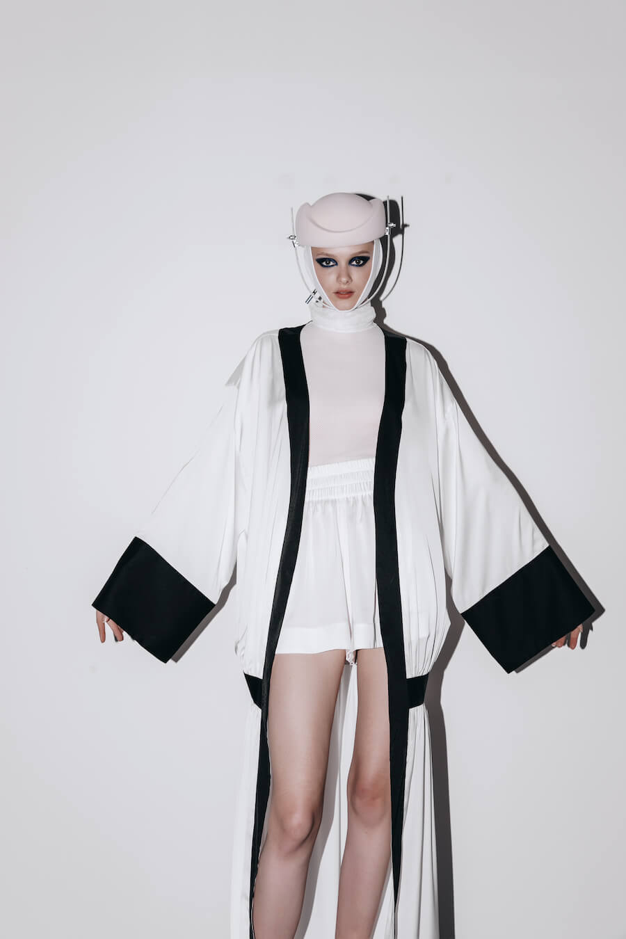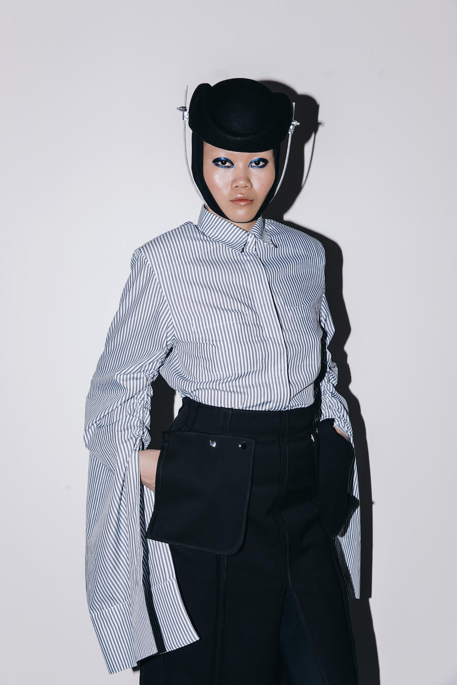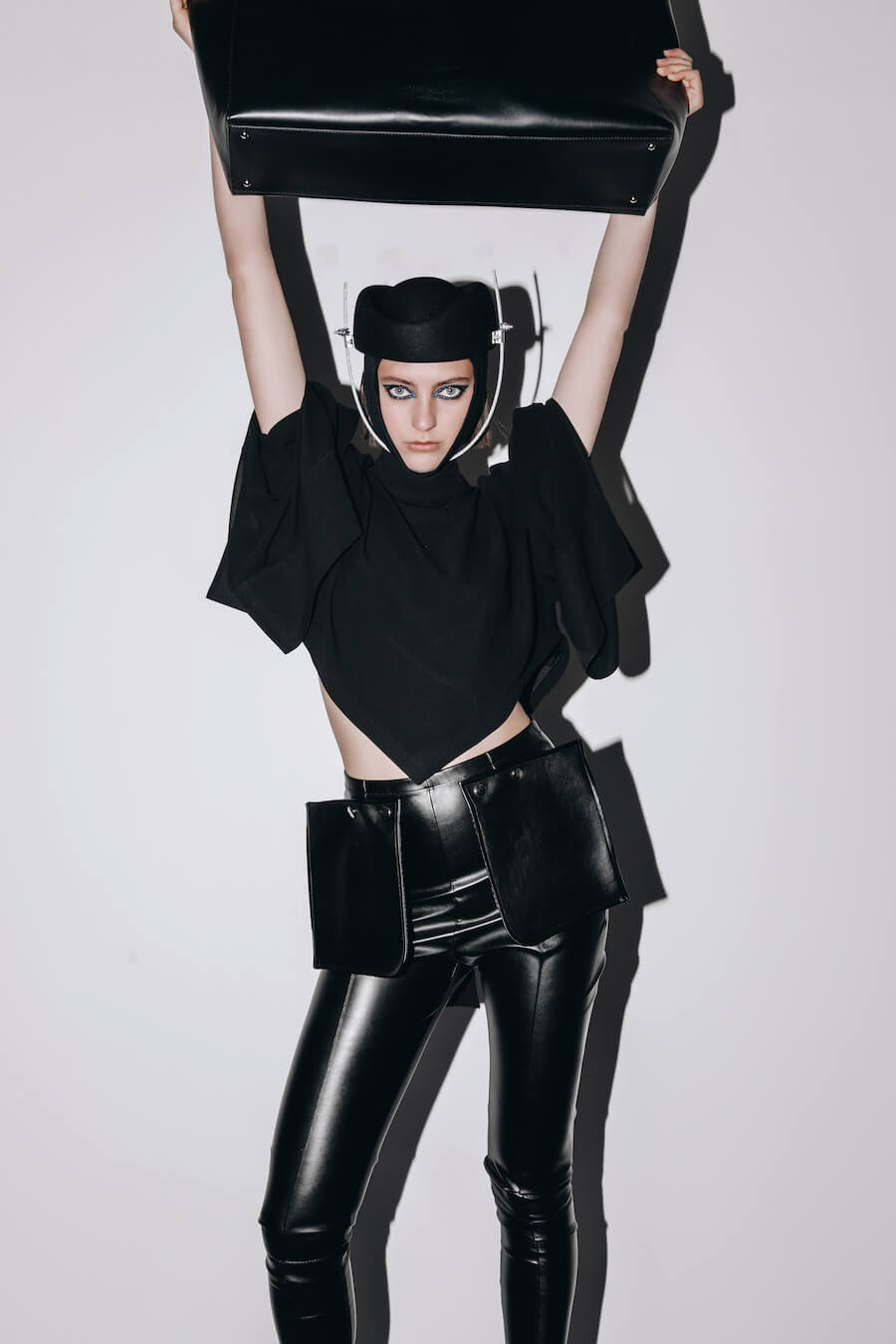 On top of timeless sensuality, the silhouettes in the autumn/winter 2021 collection are tailored so that they can accompany the person wearing them throughout the whole day. These are pieces we can easily wear around the city, to a get together with friends and even on vacation. Accessories by Eva Che from CheHub COLLECTIVE complement altogether twenty silhouettes. Eva Che also beautifully altered hats by TONAK and touched up all stylings.