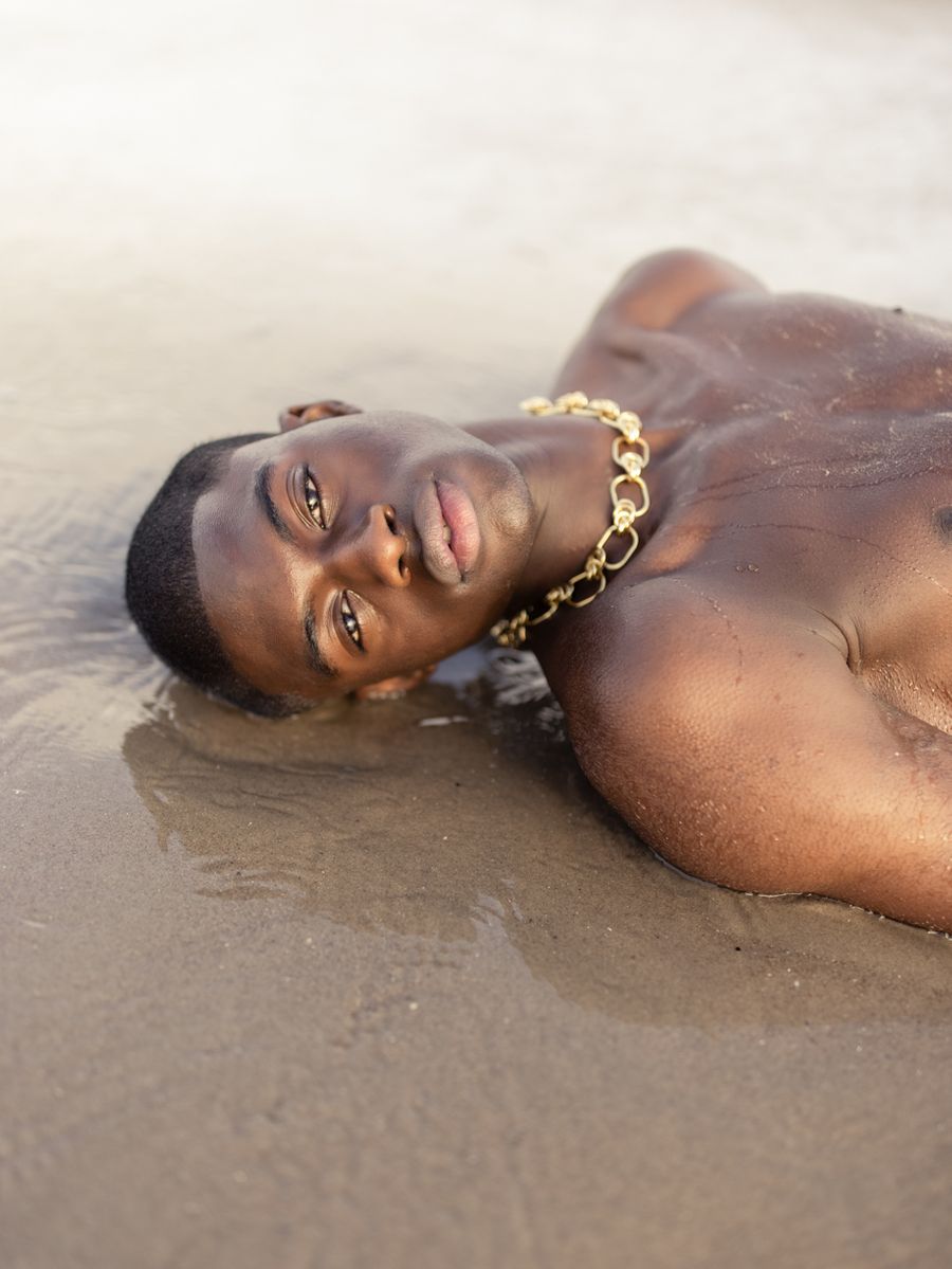 “Midnight, Salt and Sea” is the story of a boy returning to nature, and getting back in touch with the land, to nature, to what is wild in each of us. And indeed the boy becomes a part of the landscape, expressing the beauty of ourselves in our most stripped-down, natural form. I specifically wanted to work with an African American model to show and celebrate black male beauty.