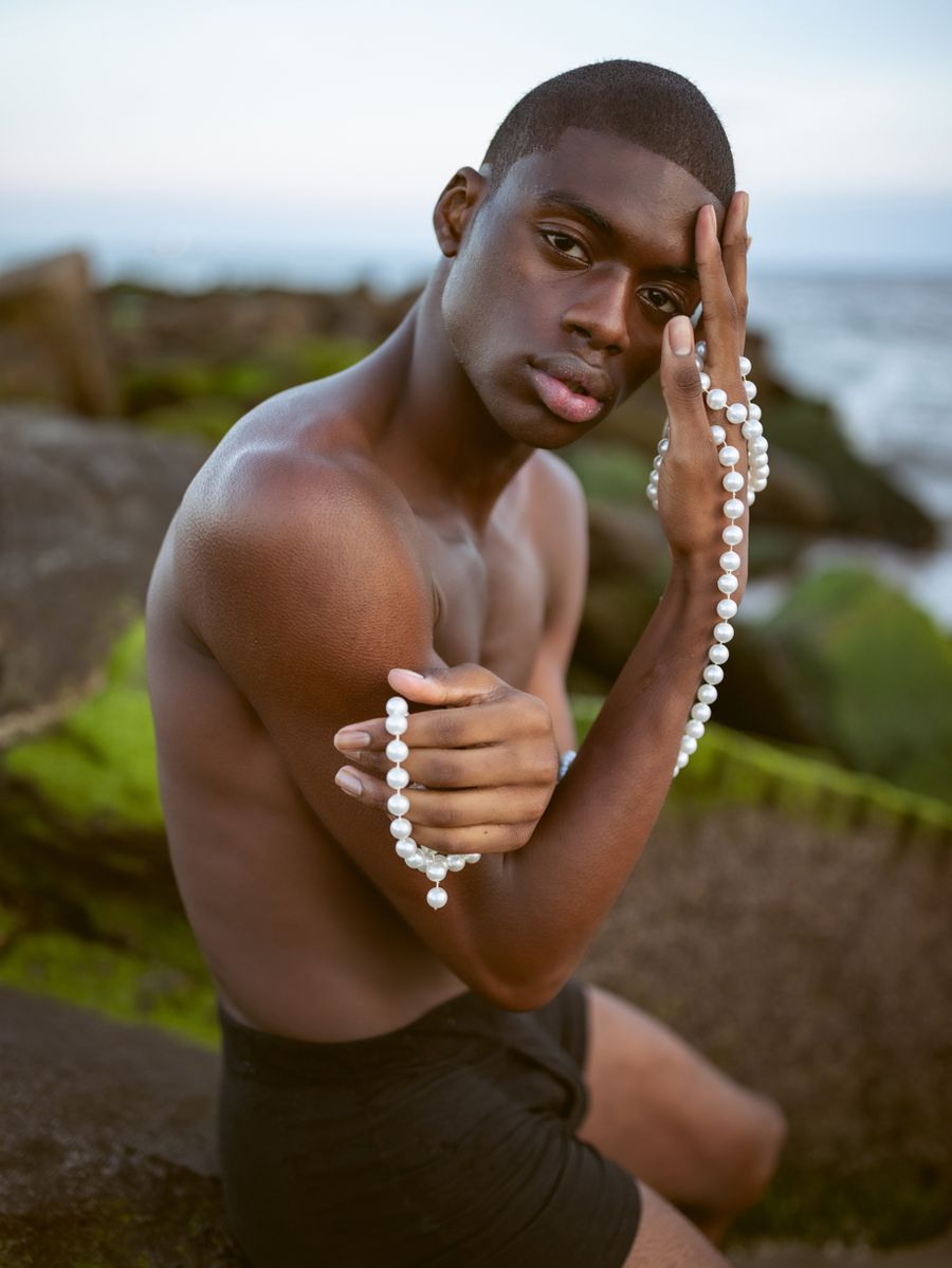 My model, Waverly Fredericks, is a professional dancer who is currently enrolled at the esteemed Juilliard School in New York City. He has been trained to be very physically expressive as a dancer, and so this really translated to the demands of our shoot. We became co-collaborators in the physical expression of my vision. Waverly was a joy to work with because he was open to my direction and suggestion but also found he brought his own ideas from his dance background to the table. I simply loved working with another artist in this way.