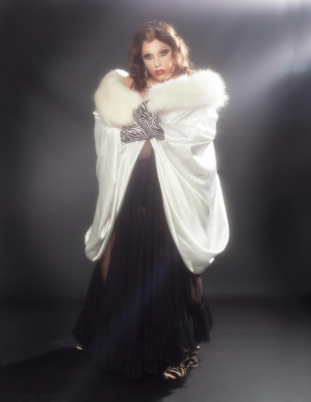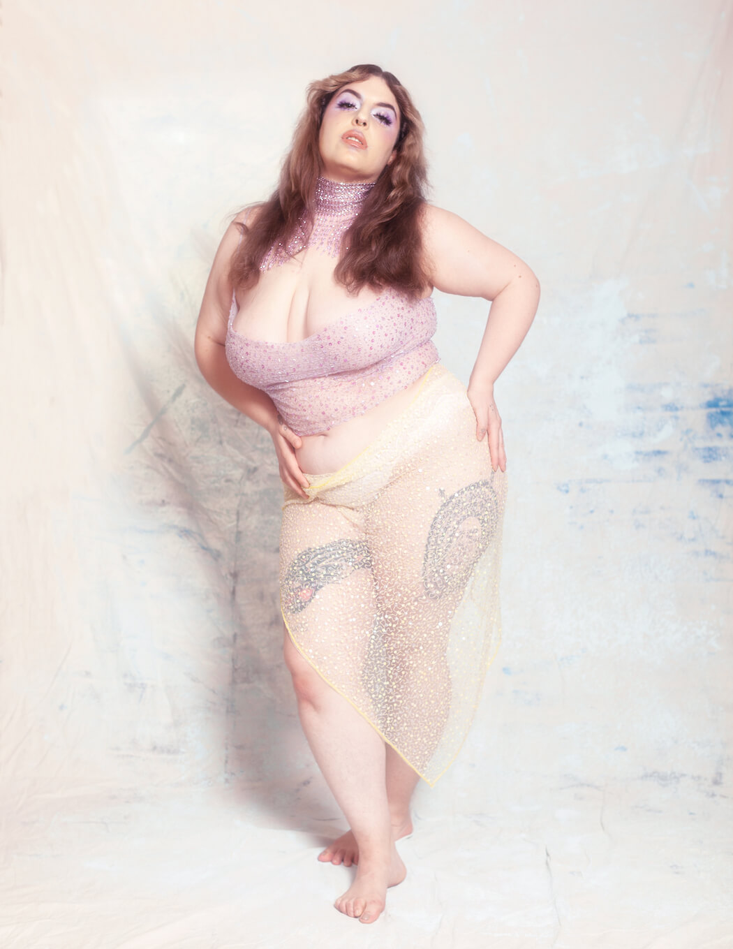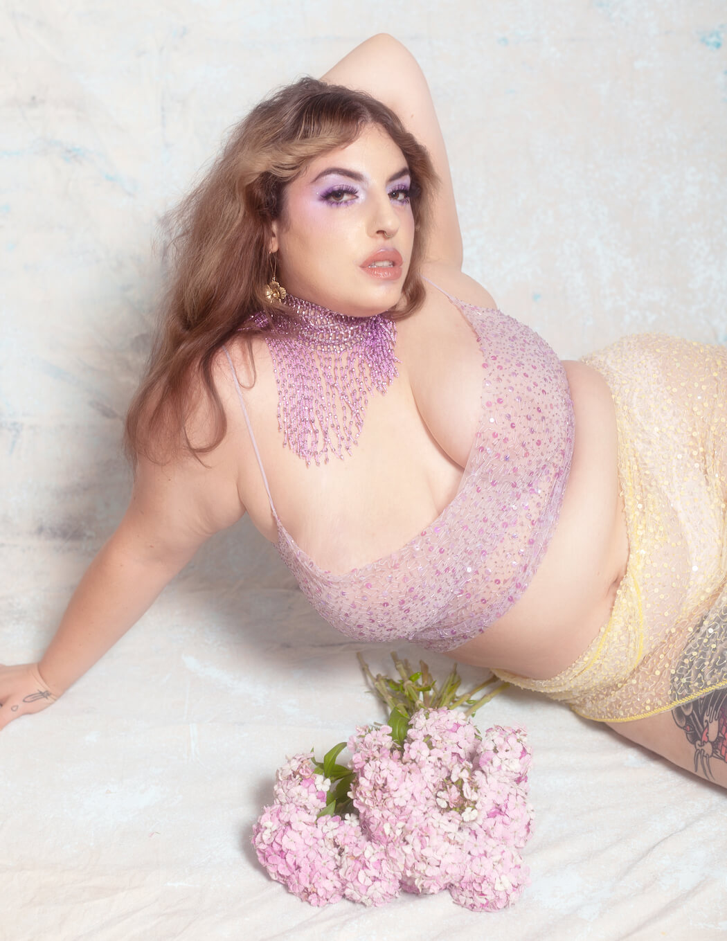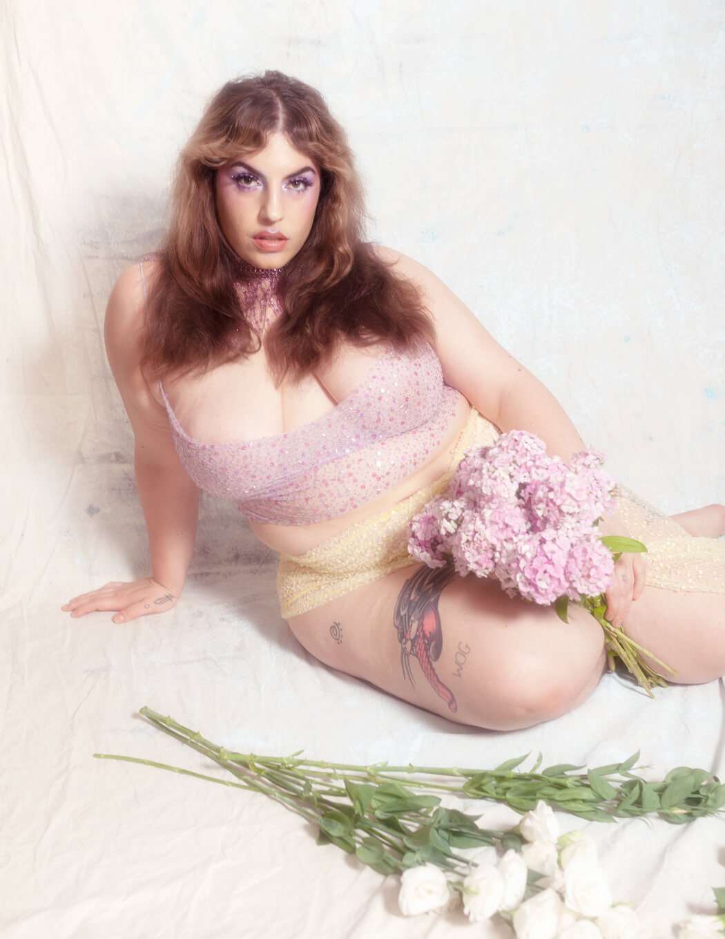 A KALTBLUT exclusive. Photography by Beth Harris. Model is Michaela Sophia Vujovic. Make up by Jade Diaz. Styling by Kirsten Humphreys. Brands are Country Road, Dyspnea, Modern Mistress. Born in Sydney on Gadigal land with a background of Serbian and Montenegrin descent, Michaela Sophia Vujovic is an artist and creative operating under the names of mange debauch and the little prince. Themes of sexuality, gender, psychology, cultural strains, ancestral pain, ritual & traditions make up the bones of most of their works. They engage in body politics and continue to advocate for body positivity through their modelling work.