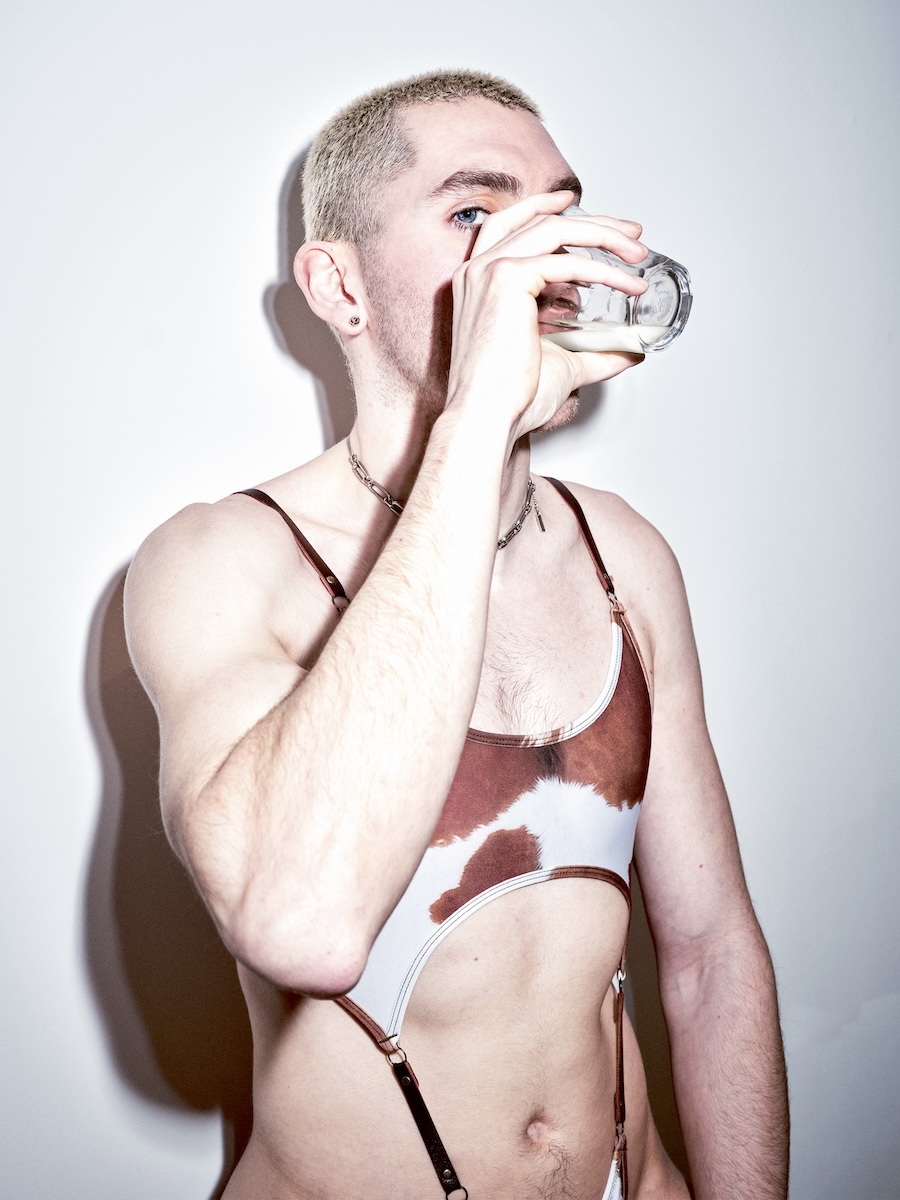 A KALTBLUT exclusive. Photography by Maxwell Anderson. The model is Todd Lamming. Fashion by Effenberger Couture, ERIC AF. “As part of an ongoing collaboration project between the two, ‘MILK’ explores the sexual and domestic tension between the photographer and his subject. Set within the quiet intimacy of a home, it is uncertain if the photographs are a personal document or a collaborative performance, if the two are friends or lovers, whether they have known each other for one night or one decade.