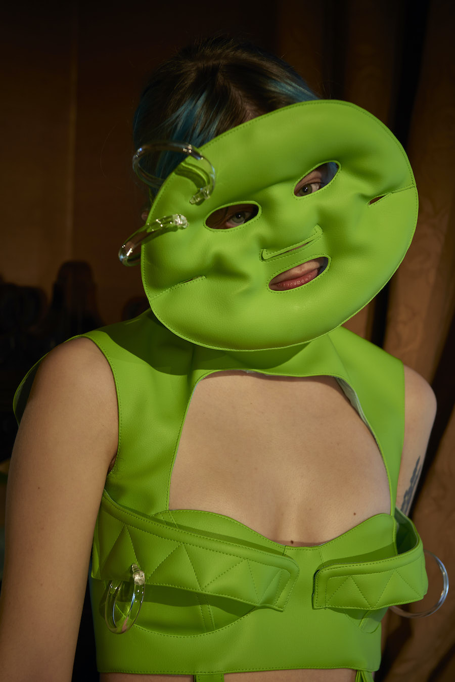 ‘Mind your Mind’ is a powerful collection that reflects on Teodora Mitrovska’s personal lockdown experience. After almost two years of cancelled runways and showrooms, cancelled birthdays and club nights, it felt like nothing really mattered anymore, so the usual inspiration that Teodora takes from commenting on socio-political issues felt irrelevant. It seemed that the only appropriate thing to do was to self-reflect and strip the concept of any high-brow ideas – to focus on something very simple, very current and very relatable.