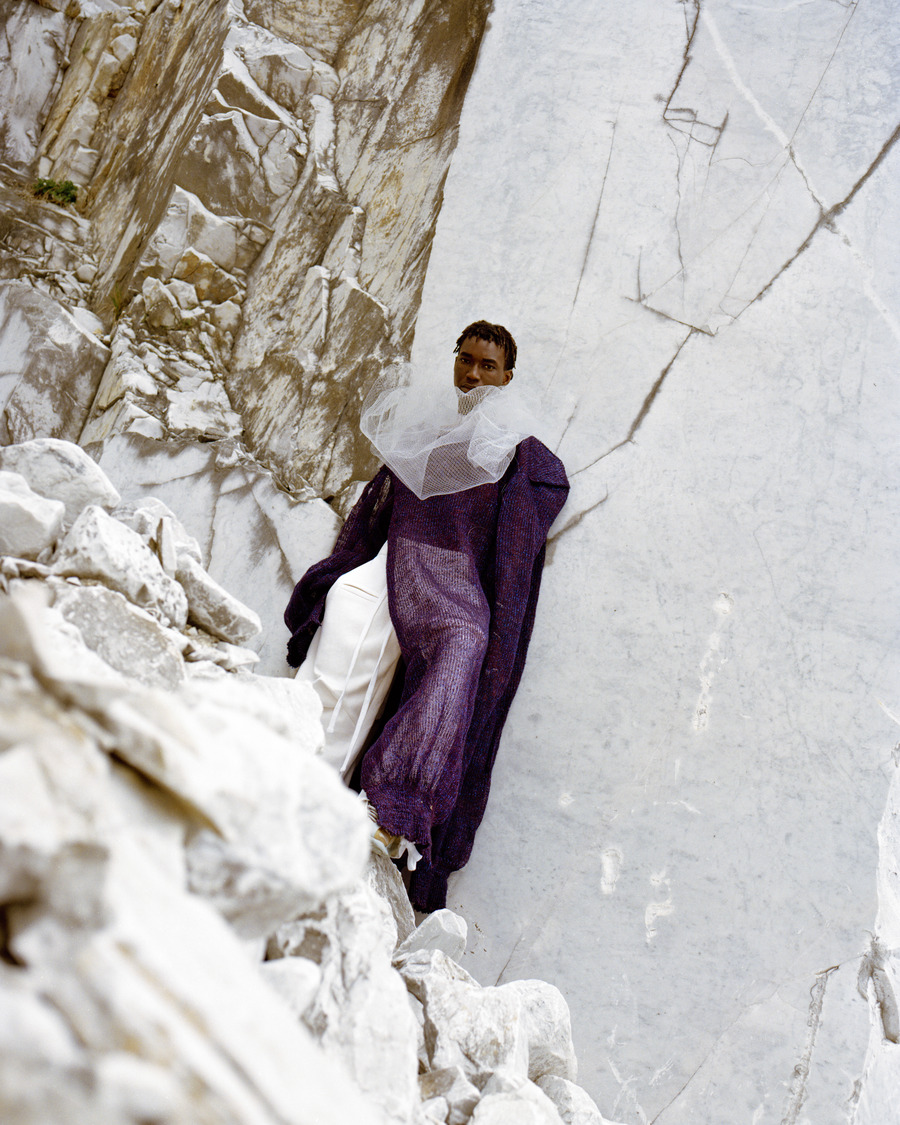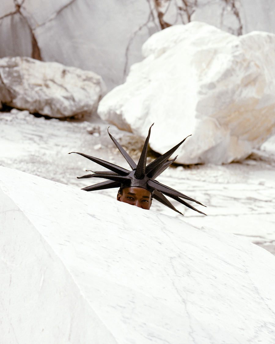 A KALTBLUT exclusive from Cave Sagro Murlungo, Carrara. Photography by Jamie Smith. The model is Mame Goor signed at NoLogo MGMT. Styling by Melle Braaksma. Born in Tottenham in London and based in the Netherlands, Jamie’s work focuses on the perception of the self and the ‘other’.