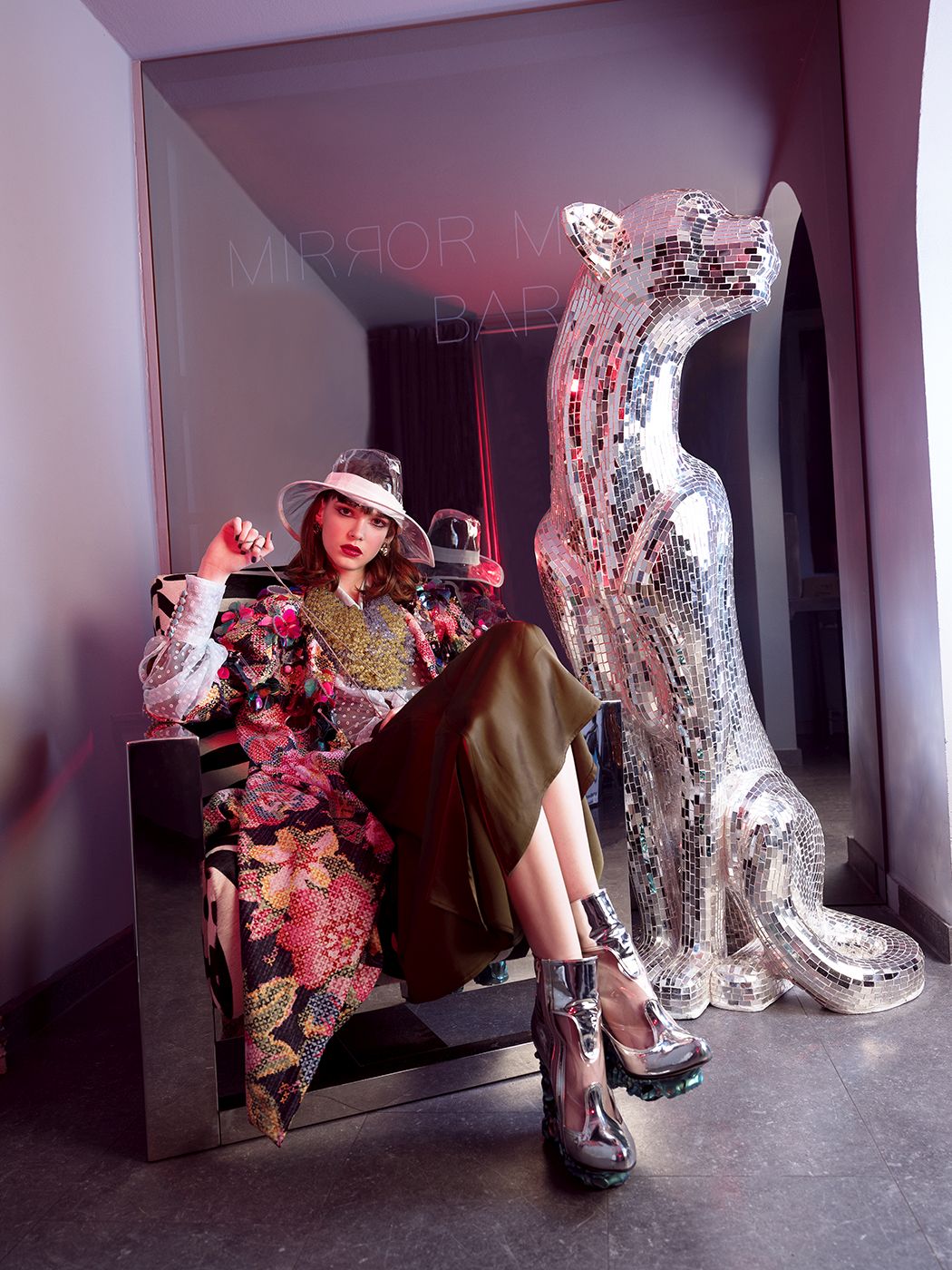 A KALTBLUT exclusive womenswear editorial. Photography by Ammy Berent. Models are Caro and Nana Reznichenko, both signed to Louisa Models Munich. Styling, Hair and Make-up, Nails by Simone Breu. Location is Mirror Munich Bar.