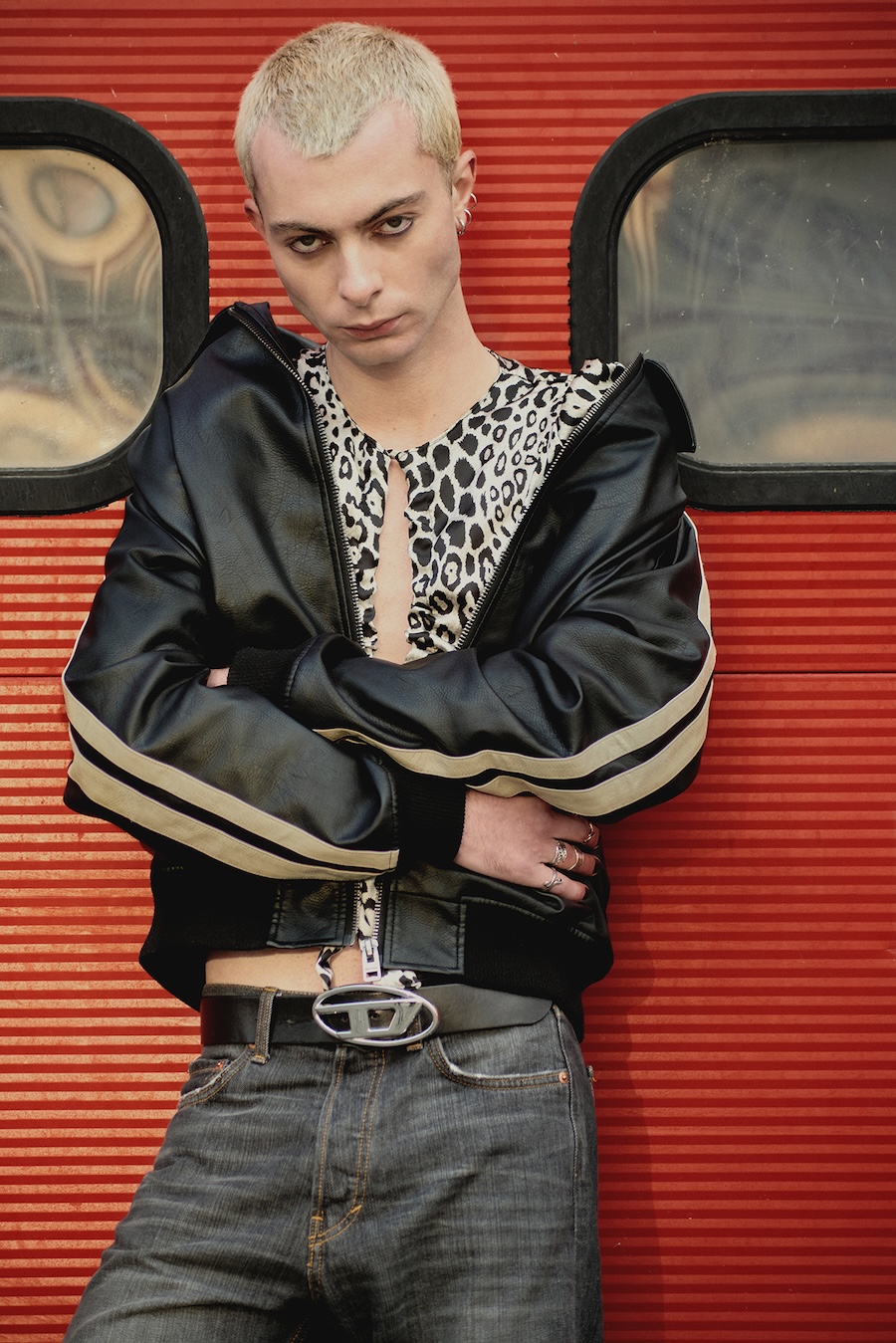 A KALTBLUT exclusive. Photography by Eva Chamosa. The model is Matthias Monnier signed at agency Angels&Demons. Styling by Jeannelly Parfait Tukina using Claudie Pierlot, Kaema, Levis, Diesel, Sandro, Weekday, Bershka, Amazon, and Vintage items.