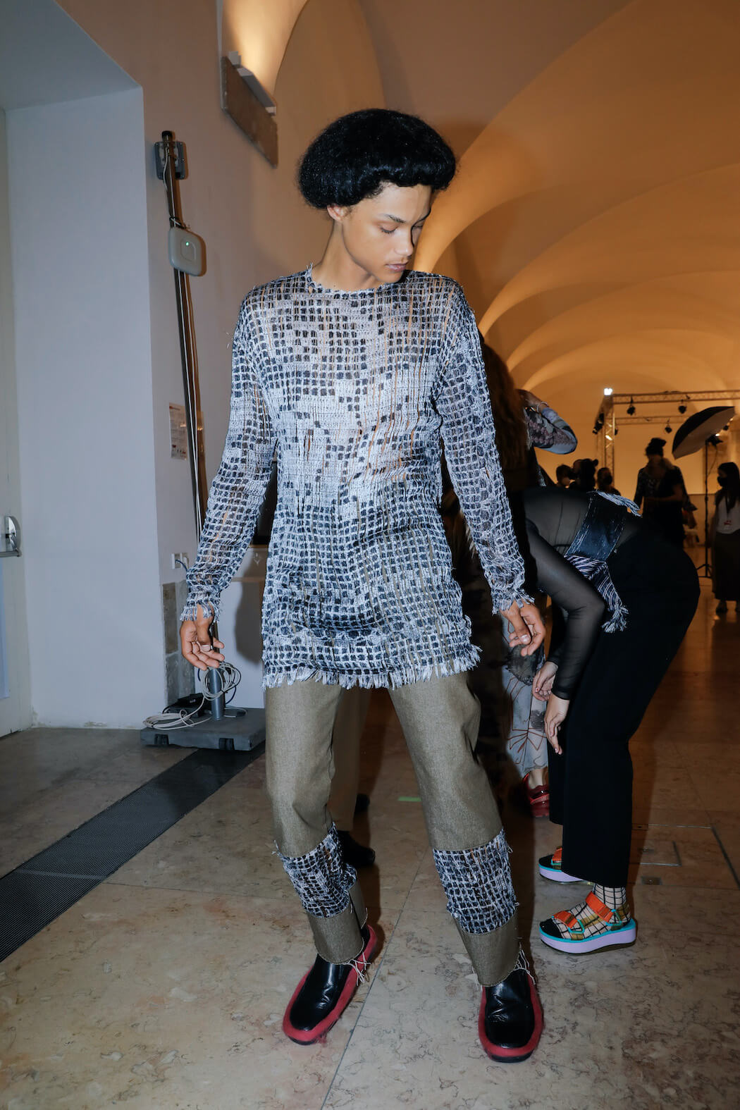 For her SS19 collection, she held her first catwalk show in Lisbon Fashion Week and quickly gained notoriety for her deconstructed woven fabrics that result from a process that involves bonded recycled threads. Known for combining handmade fabrics and bold graphic prints, Constança Entrudo has attracted attention from the likes of Suzy Menkes, who cited her fabrics as “high quality of handwork” on Vogue UK and many other press. All her pieces are created in accordance with her belief that making clothes is about the way we reuse flat fabric to a 3D figure form of the human body.