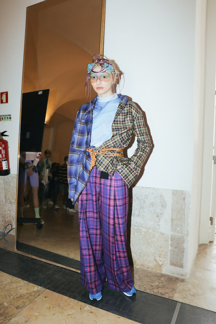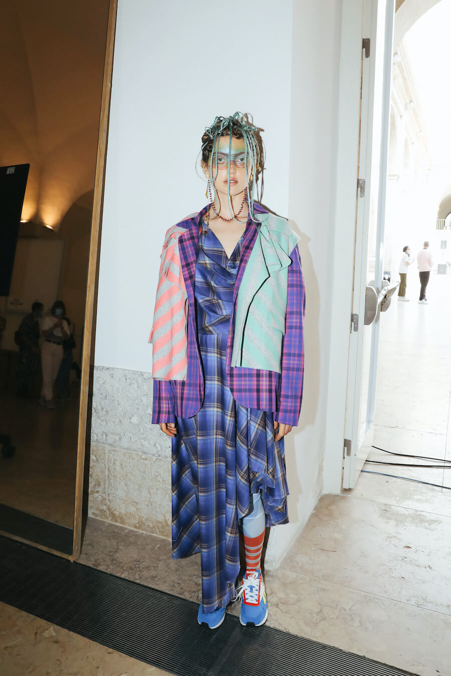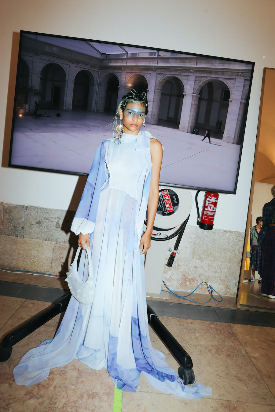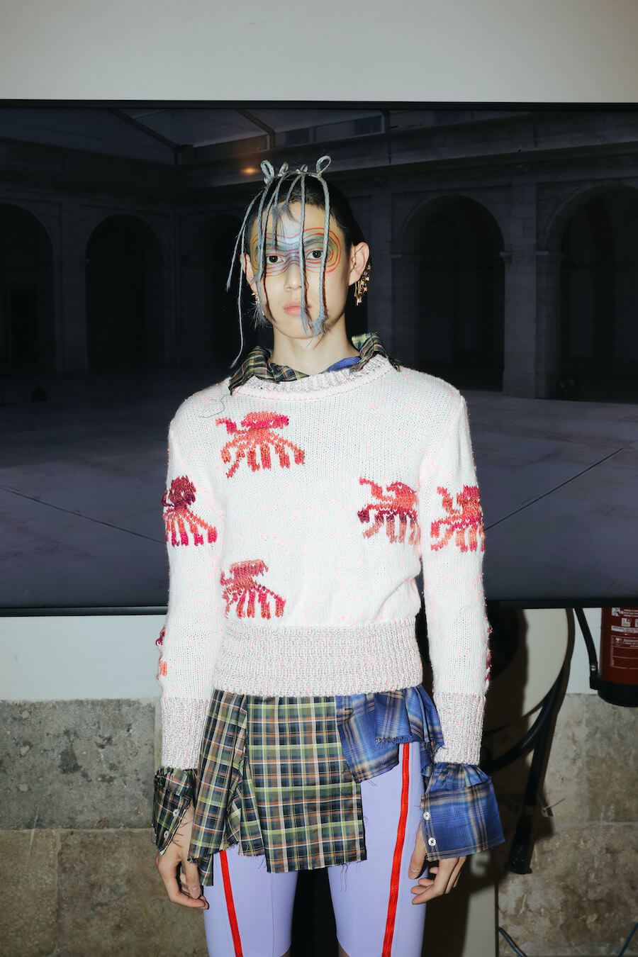 For Fall/Winter 2021/22, JMGLHS presents once again a fusion High/Lo tech. The natural world is now represented by the oceans, beginning with several days of research on Portugal’s southern coast, which led to further experiments in the studio with construction and reconstruction both of form and through the medium of 3D digital art. Once again, this contrasts with the urban world of streetwear after another trip to Mexico, and also surf culture, visible in both the use of neoprene and knitwear pieces. Deadstock was used, where possible, to reaffirm the brand’s commitment to sustainability. Backstage photos by Gonçalo Silva @goncaloasilva