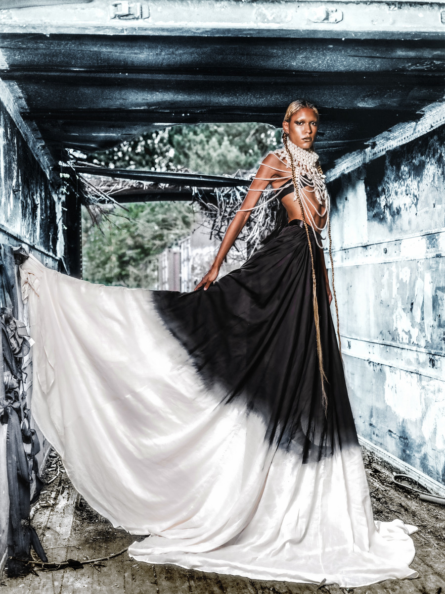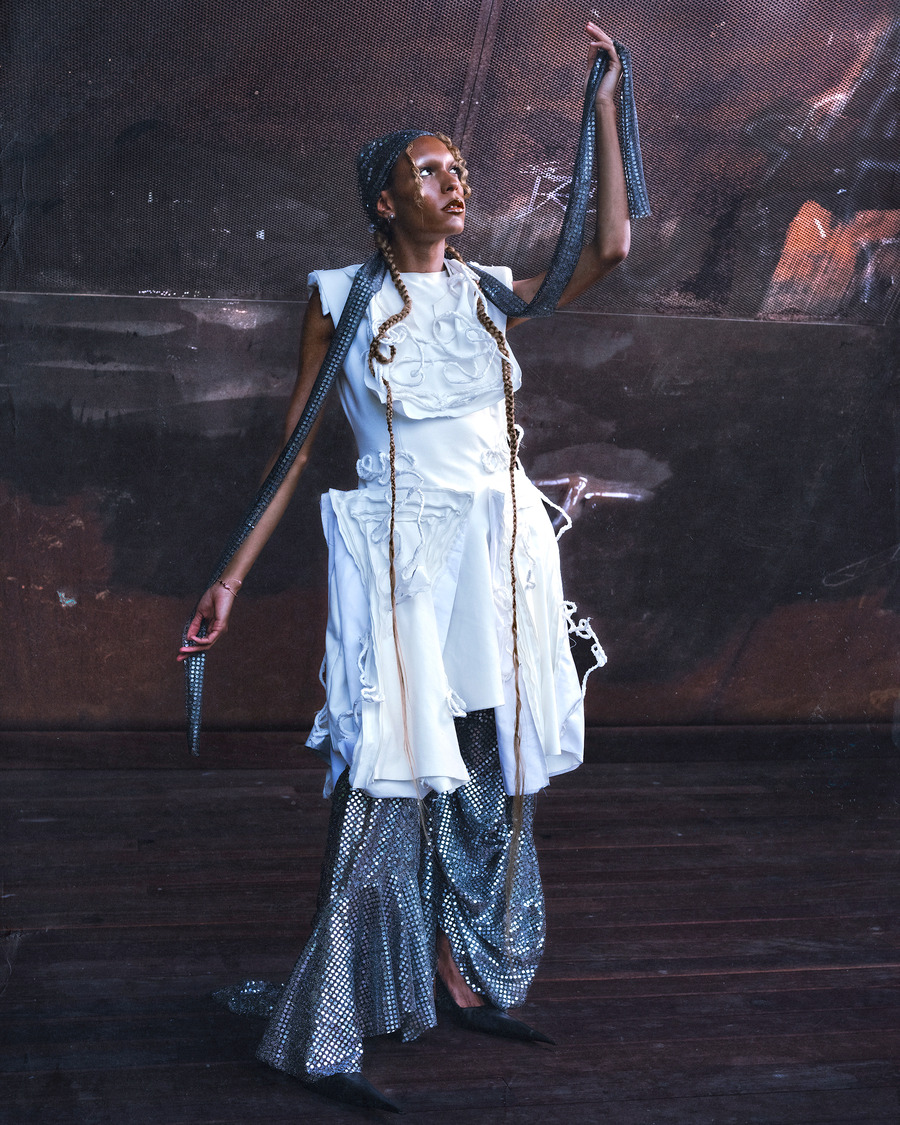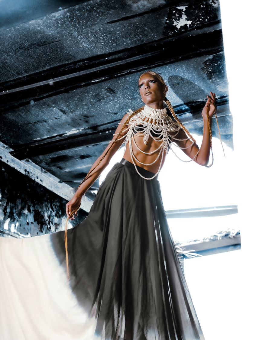 Photography by Gabriel Monteregge. Creative Direction by Alex Brzezicka and Gabriel Monteregge. The model is Samantha. Styling by Oliwia Filipek. Make-up by Raphael Arcadios. Brands used are Abi Wood, Ayham Hassan, Benita Guo, Lea Sophias, and Shloka. A KALTBLUT exclusive.