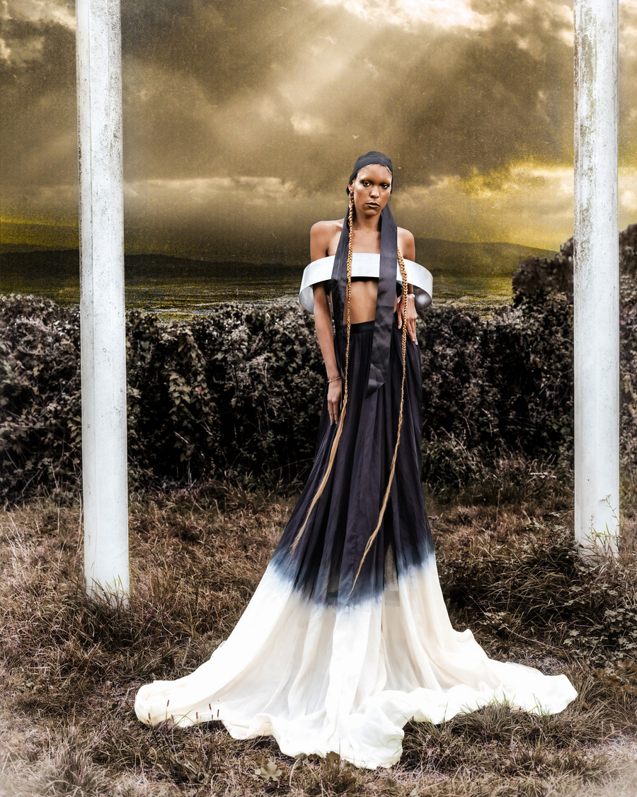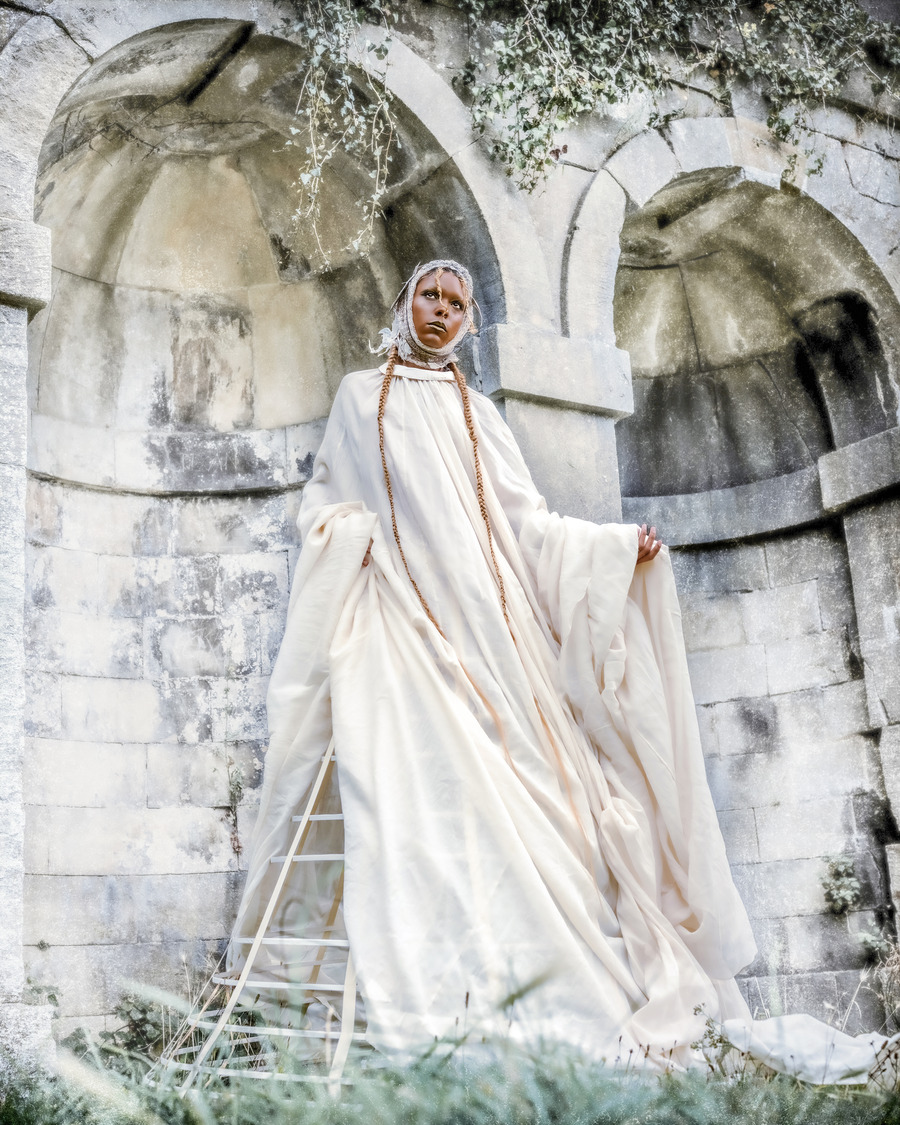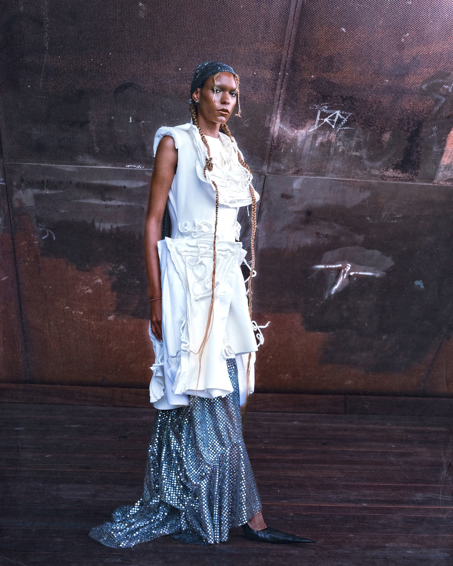 Photography by Gabriel Monteregge. Creative Direction by Alex Brzezicka and Gabriel Monteregge. The model is Samantha. Styling by Oliwia Filipek. Make-up by Raphael Arcadios. Brands used are Abi Wood, Ayham Hassan, Benita Guo, Lea Sophias, and Shloka. A KALTBLUT exclusive.