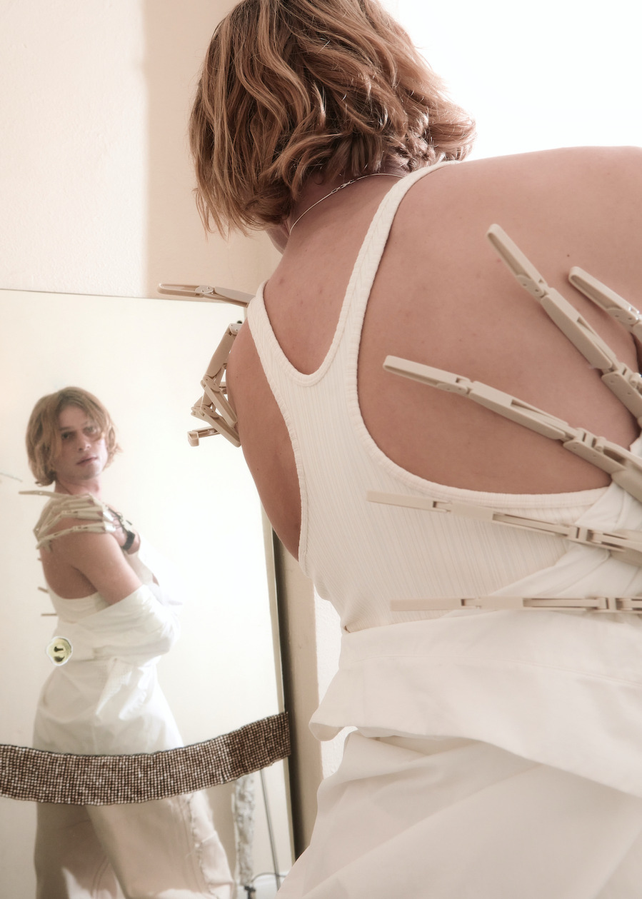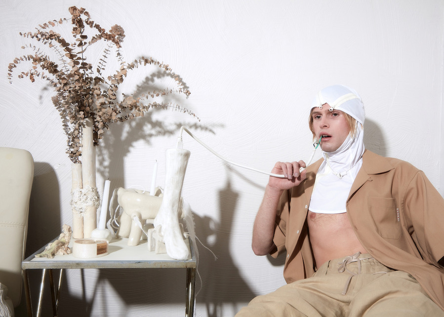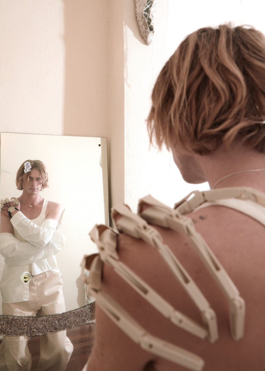 Monochromatic Dreamscape is a story by Ale Washington, a creative director, and photographer from Sinaloa – Mexico, based in Los Angeles. A KALTBLUT exclusive. This editorial is focused on the young ceramic artist, Canyon Cognac. Text by Adan Cisneros. DoP by Joshua David Pankiw.
