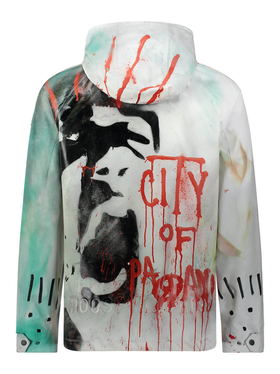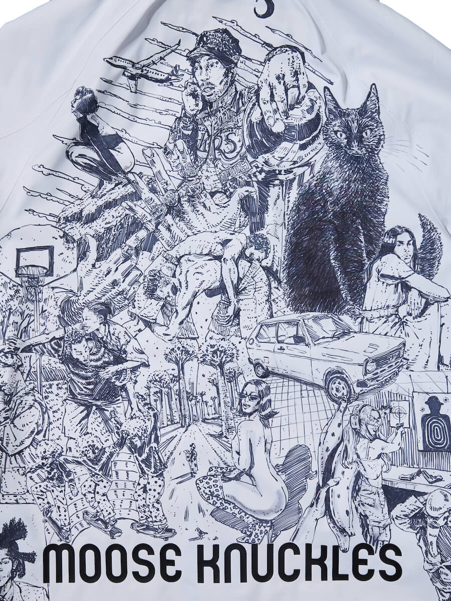 With each artist using a white Moose Knuckles Lead Rider jacket as their canvas, the finished one-of-a-kind wearable artworks from round one’s NYC artists have completely sold out.