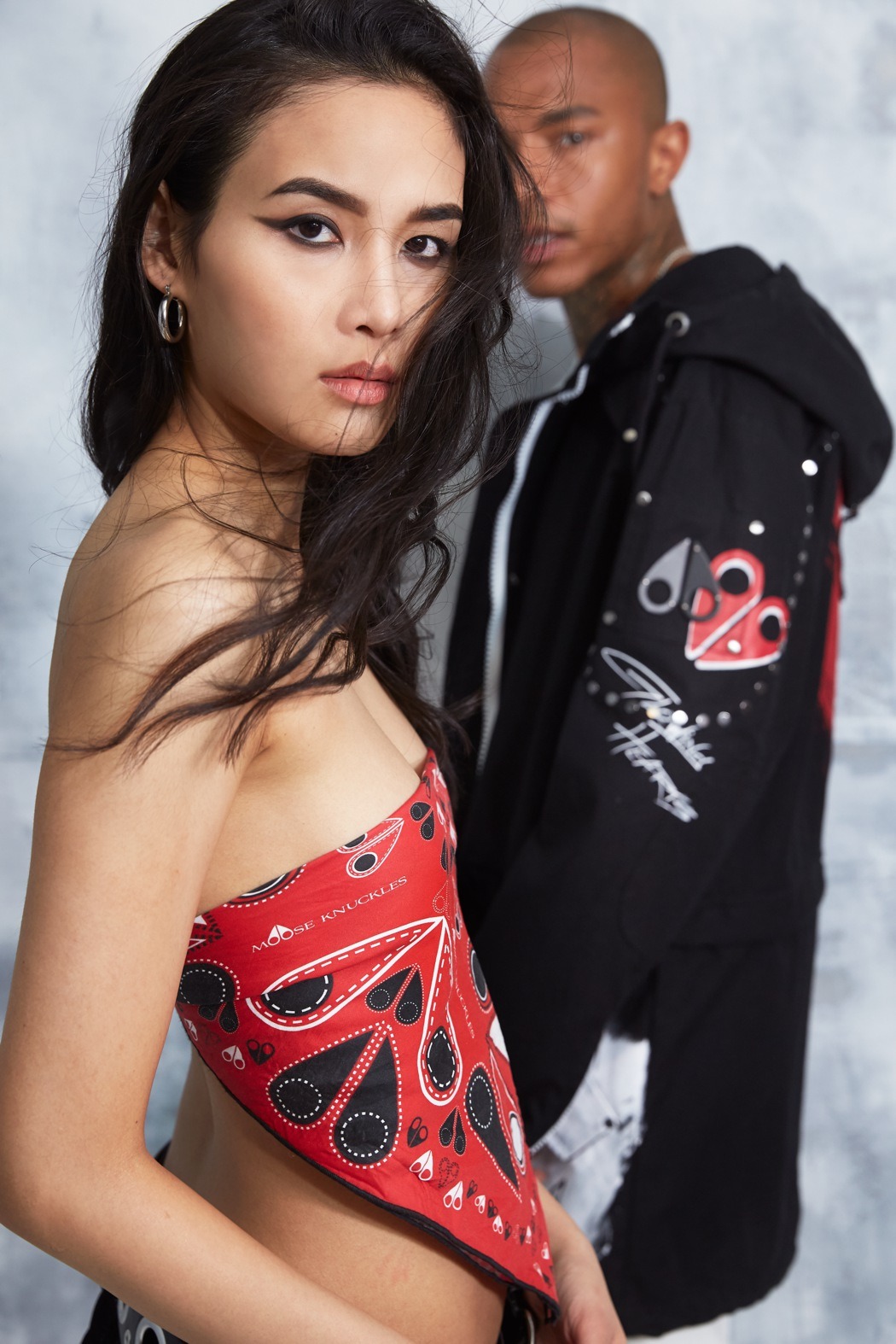 Graphic treatments for the season range from thematic horseshoes to humble eat-your-green broccoli. Exotic python and kangaroo hand-made custom cowboy boots with inlay designs from Alberta Boot Company round up the offerings for the season. The hardworking looks for S/S20 are sealed with Moose Knuckles’ logo-patterned bandanas.