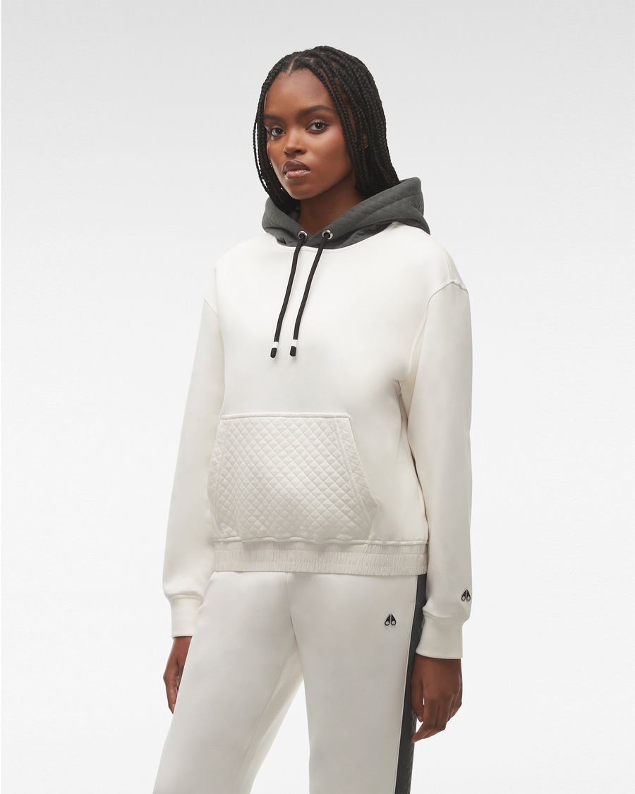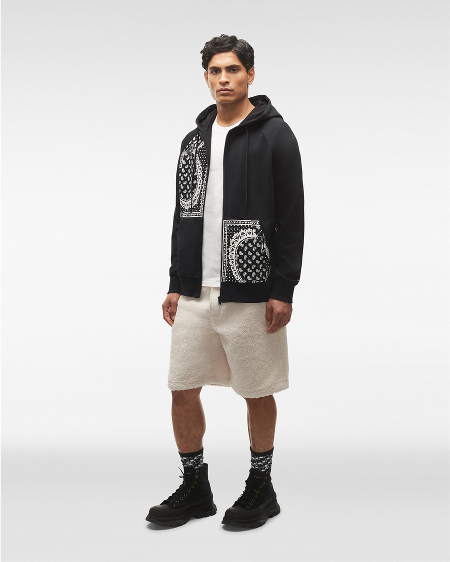 An evergreen item that is not to be underestimated is the versatile unisex pullover, crafted with premium cotton French terry and the iconic Moose Knuckles logo on the chest. This staple piece, introduced in a brand new bandana print and in metallic silver, can provide unparalleled comfort without compromising the look.