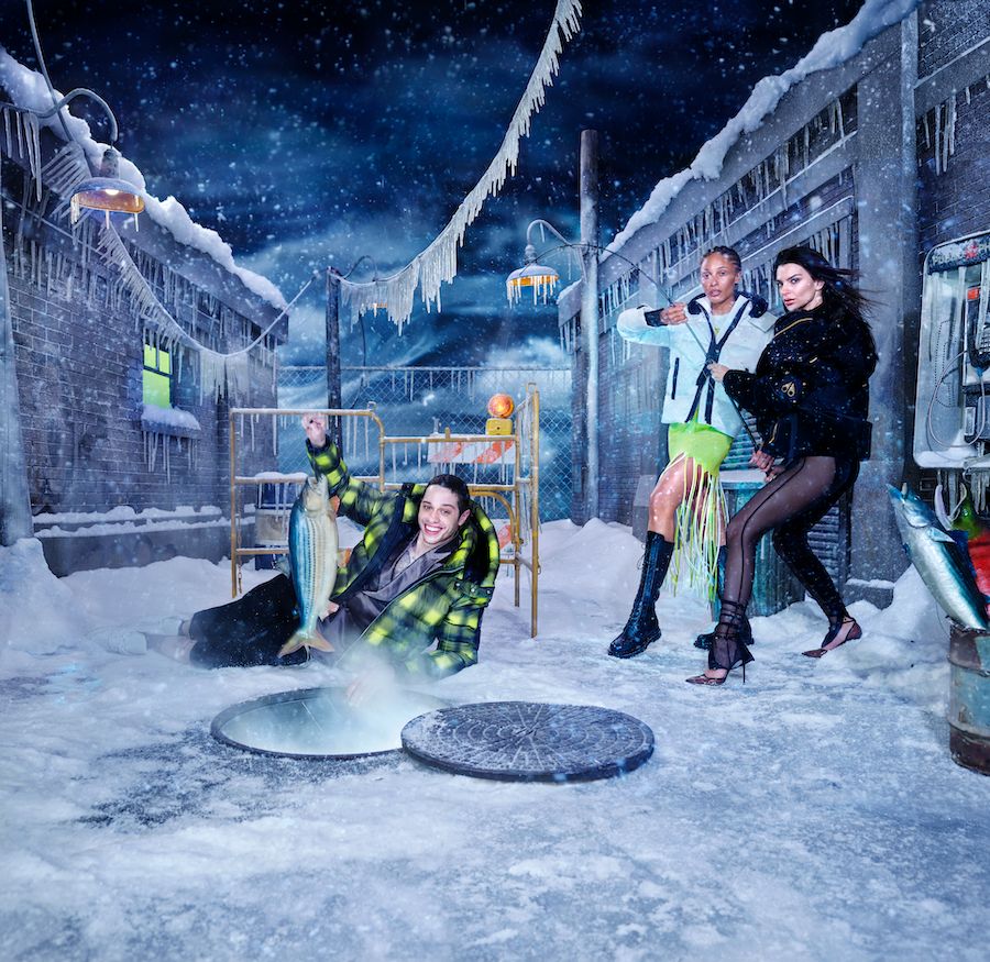 The Moose Knuckles A/W21 campaign, led by iconic photographer David LaChapelle and styled by Kyle Luu, takes Emily Ratajkowski, Pete Davidson and Adwoa Aboah into a frozen urban landscape and combines the Canadian humor typical of the brand with a healthy dose Surrealism.
