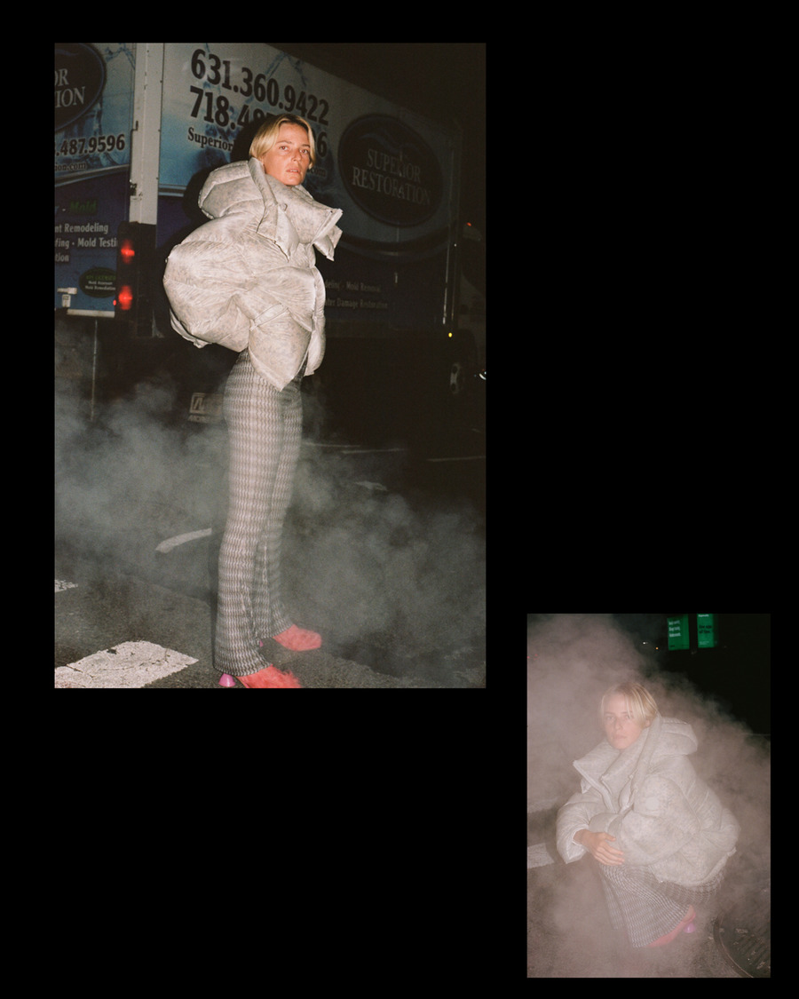 “For our first collaboration with Moose Knuckles, we really enjoyed experimenting creatively in the realm of technical performance. Our second collaboration distorts and reimagines outerwear and separates—this time to protect you from inclement weather, whether in the city or away.” — Mike Eckhaus and Zoe Latta, Eckhaus Latta