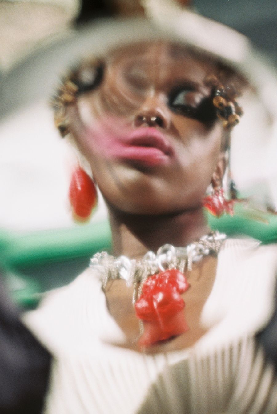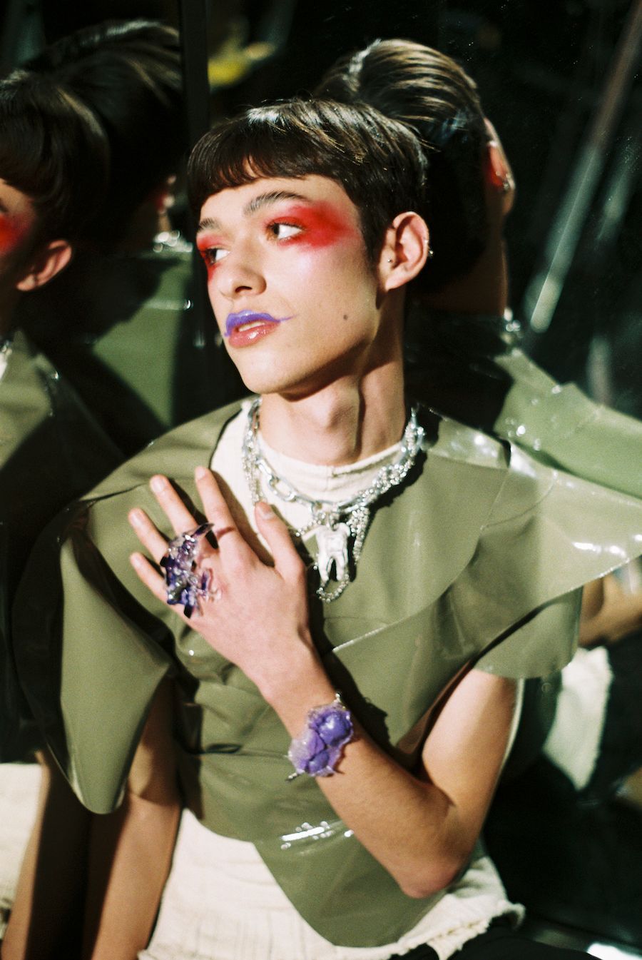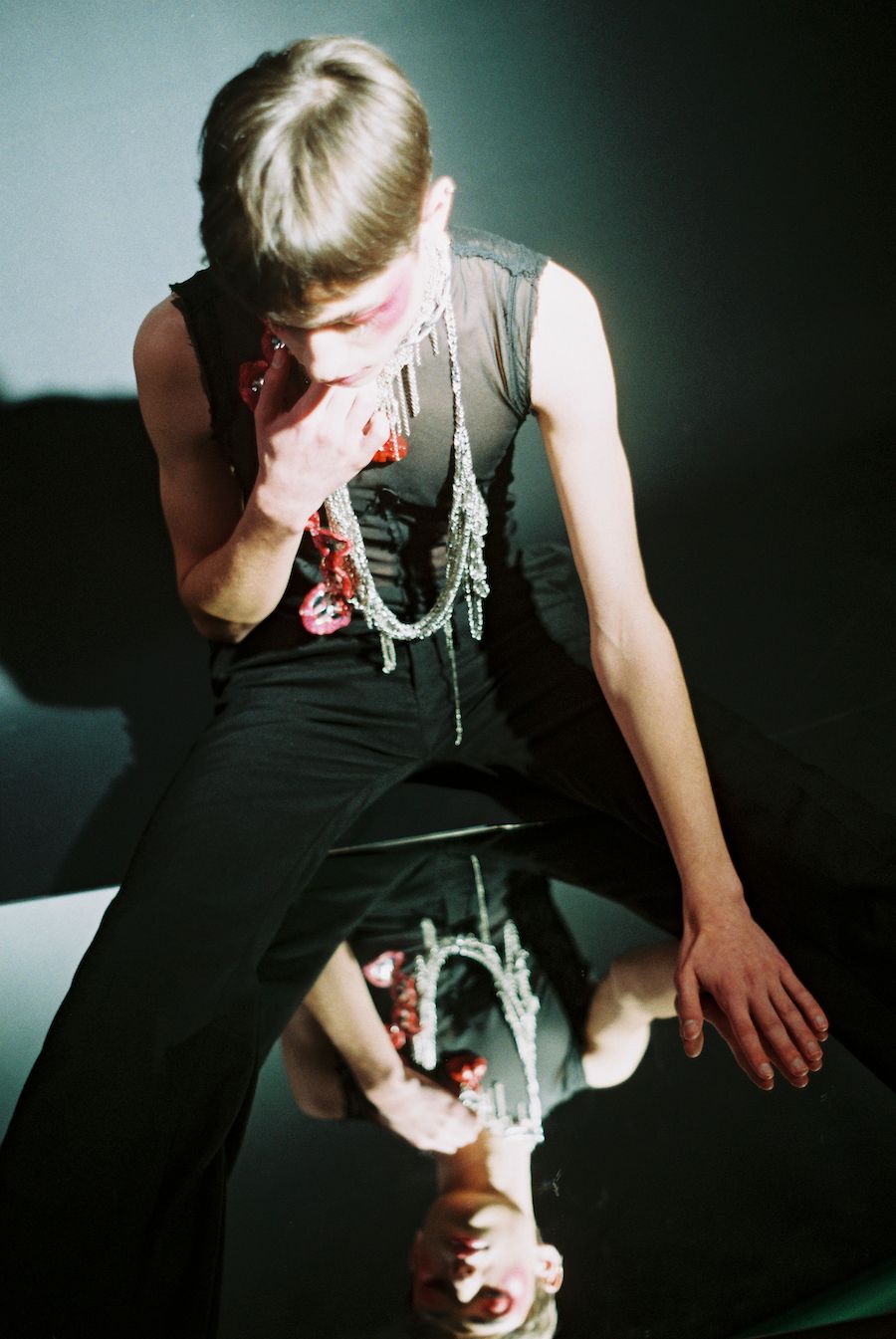 More than just fesh is a conceptual jewelry collection inspired by body dysmorphia, a psycho- logical disorder where a person believes they have faws they don’t have or tend to exaggerate a minimal problem. They have delusional thoughts where they have obsessive rituals like being in front of the mirror compulsively looking for faws. Mirror checking is a common ritual per- formed by people with body dysmorphic disorder, where they excessively check their appear- ance for long periods of time. They’ll use the mirror to confrm that their perceived faw is still there and/or is still as bad as they recall.