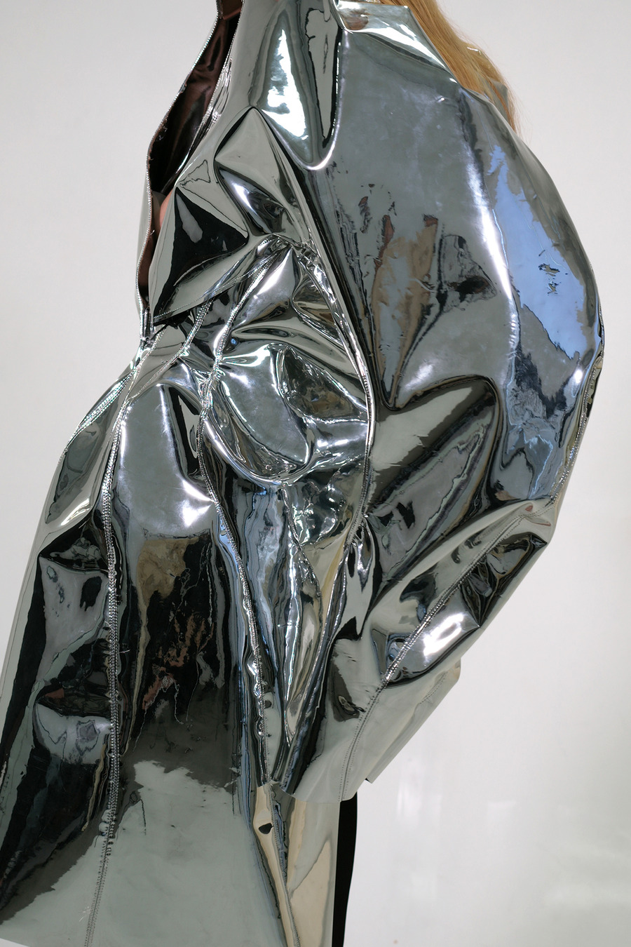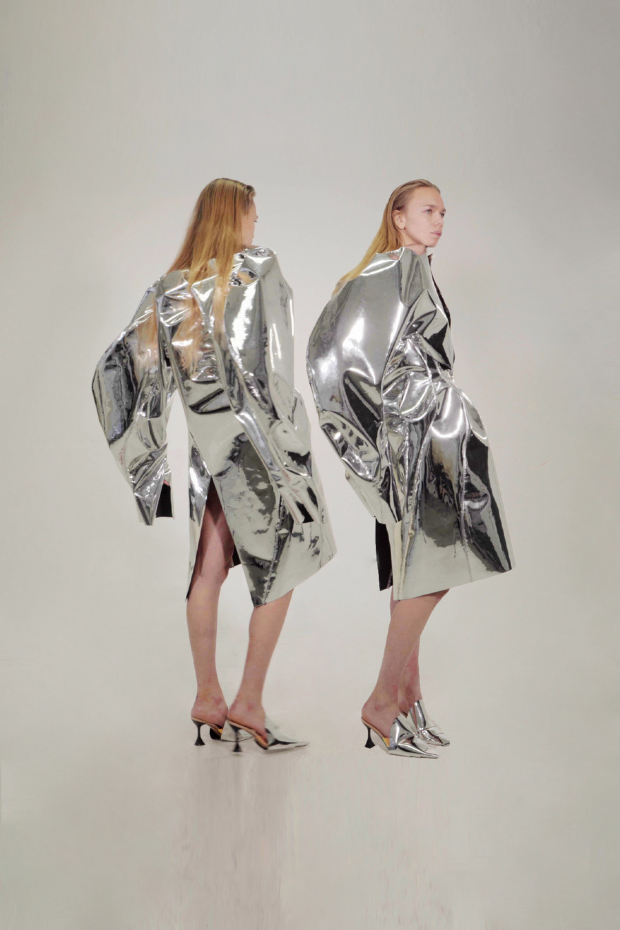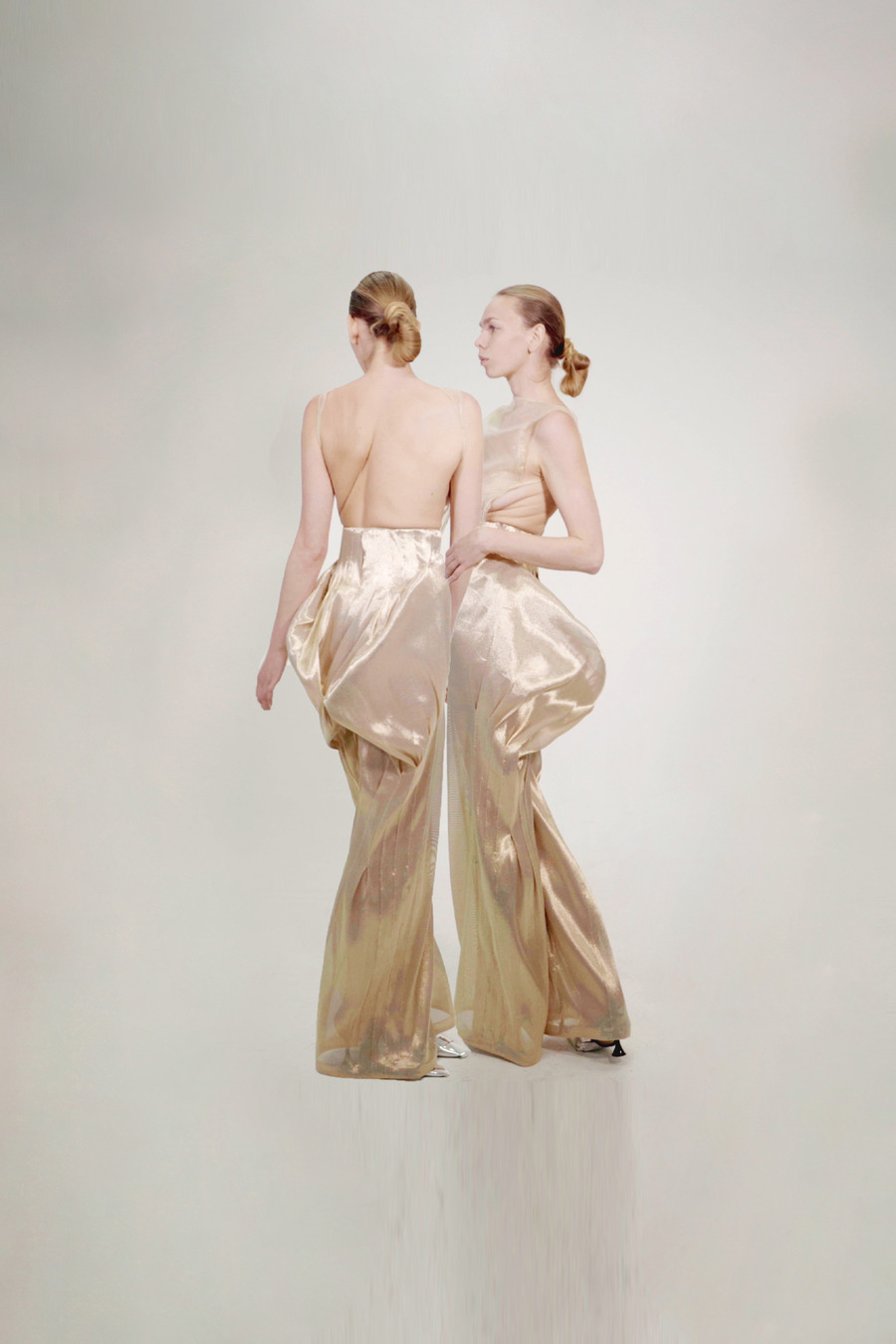The inhabitants have evolved into hybrid cyborg forms, both nurturing the electric sparrows and at the same time constructing devices to excise life without surveillance. In this collection, Weijing delves into couture-making techniques and chooses to accentuate different parts of female bodies other than what traditionally constitutes femininity. Their methodology of fabrication follows the delicate and natural properties of the textiles, eliminating elaborate under-constructions yet manifesting sculptural and airy silhouettes. MOTHER is both a love letter to female bodies and a poetic interpretation of Donna Haraway’s theories into an unsubstantial dystopian dream.