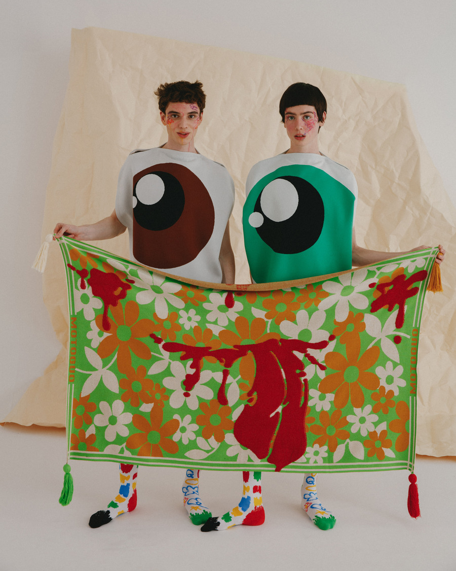 Known for its exploration of a myriad of themes surrounding nostalgia, the label dives headfirst into the narrative of “whimsical childhood familiarity” as the collection comes to life in a familiar house setting this season. Peeking in; you see giggly children in their playroom, the flickering television in the living room, the hushed tete-a-tete between parents in the studies and the escapade of mice around the kitchen. From the silhouettes, prints, and fabrication to the minute details of this collection, many of the garments revamp domestic elements with a tinge of playfulness that motoguo is known for.