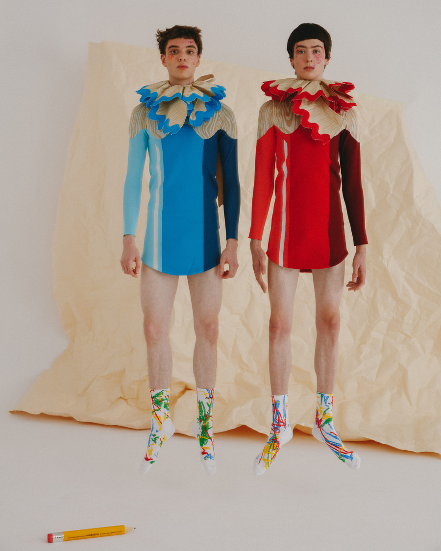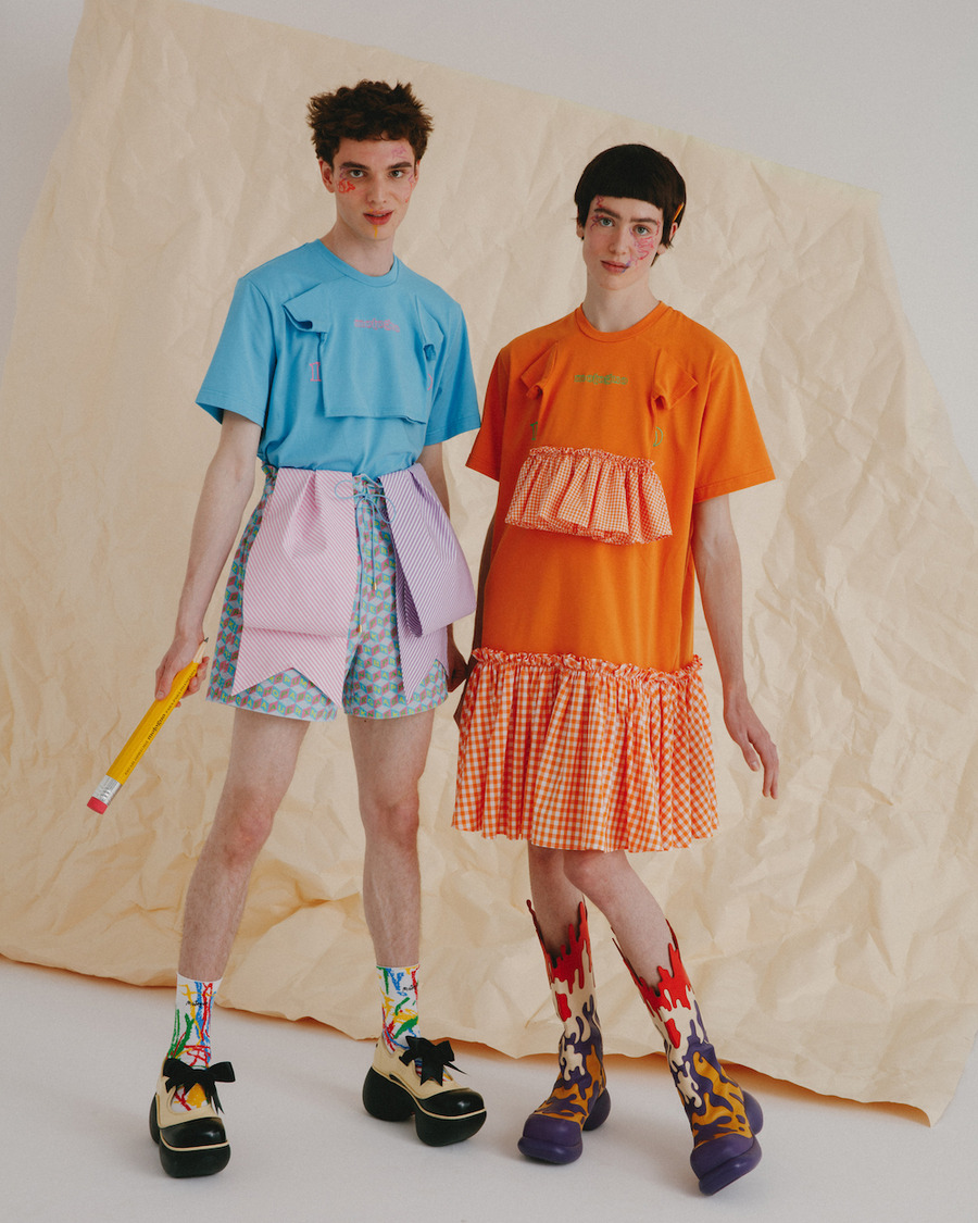 motoguo presents its new S/S 2023 collection. Para Para Phantasia’s overarching theme is extracted from Kinder’s personal experience of a dream birthed from a looming source of intense stress. The fine line between reality and dream state is further blurred when he experiences a foreshadowing of events that links closely to his predicament in real life. This bizarre phenomenon brought forth the season’s theme of dreams and imagination as the label flirts with the idea of “Phantasia”.