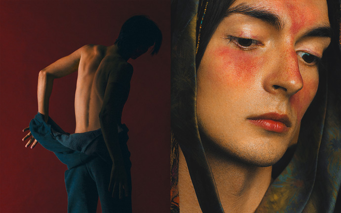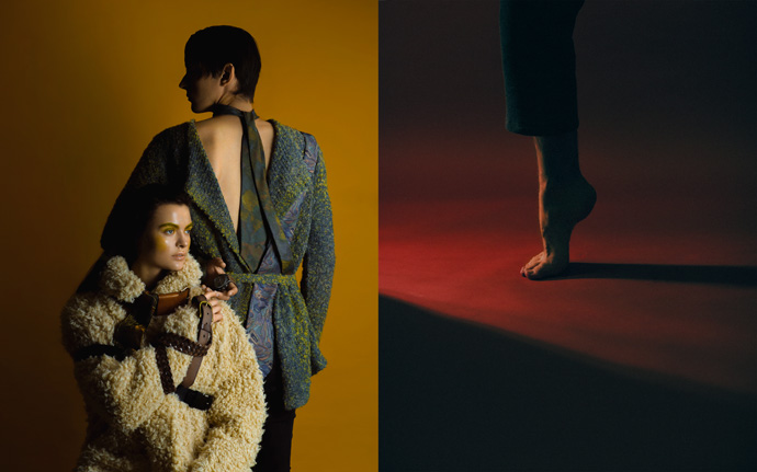 A KALTBLUT exclusive fashion editorial. Photography by Larissa Bukar. Models are Sergey Rusinov and Slavyana Miron. Styling by Kate Zhigalova. The effortlessness of the dance is born when the shackles of dormancy are broken. Staying in a rigid shell, you quietly accept the emptiness which will slowly kill you by paralyzing your consciousness. It will prevent any action by slowly growing numb, more and more each time. But when they hear themselves inside the void some begin their dance on the outside as a liberation through resistance.