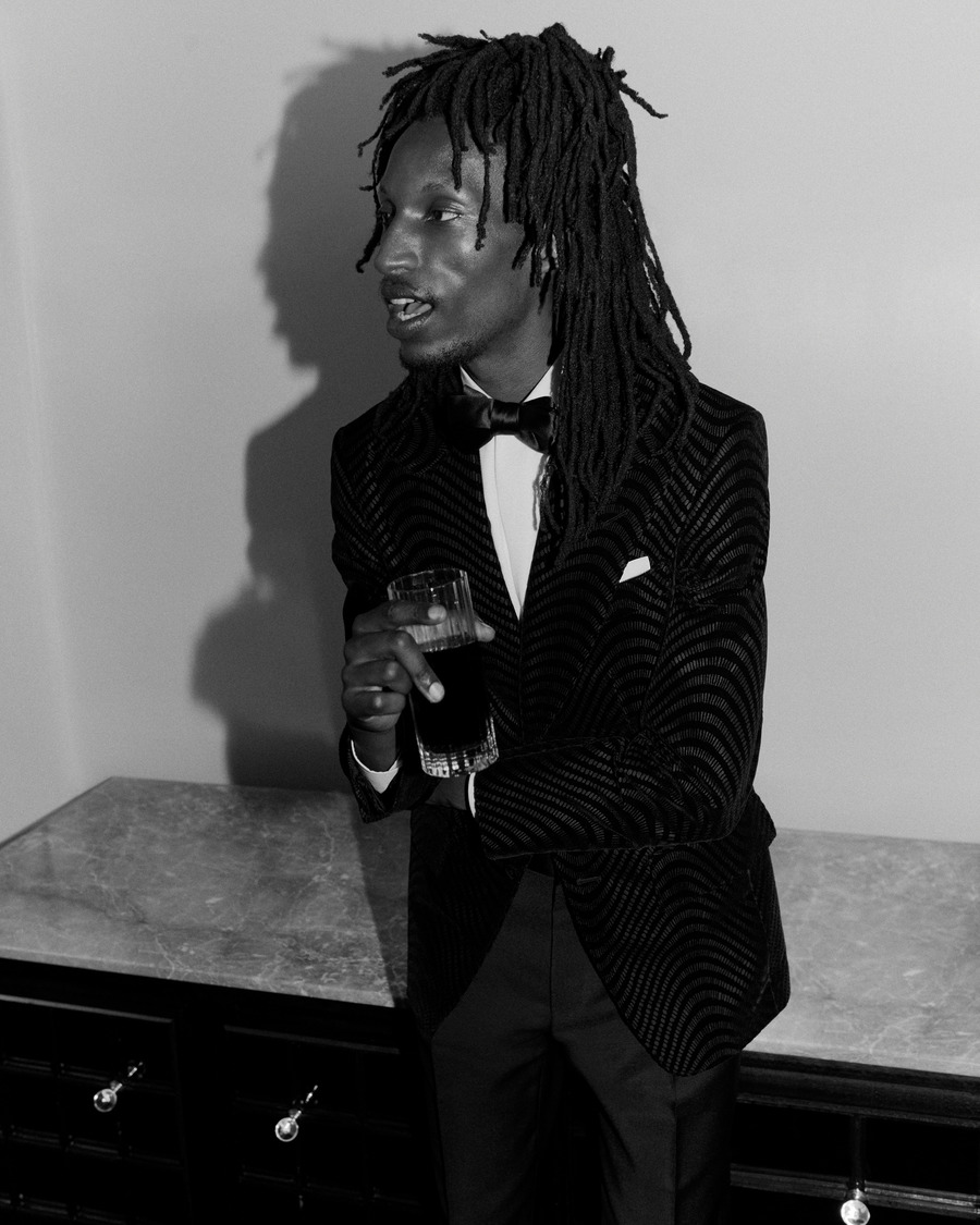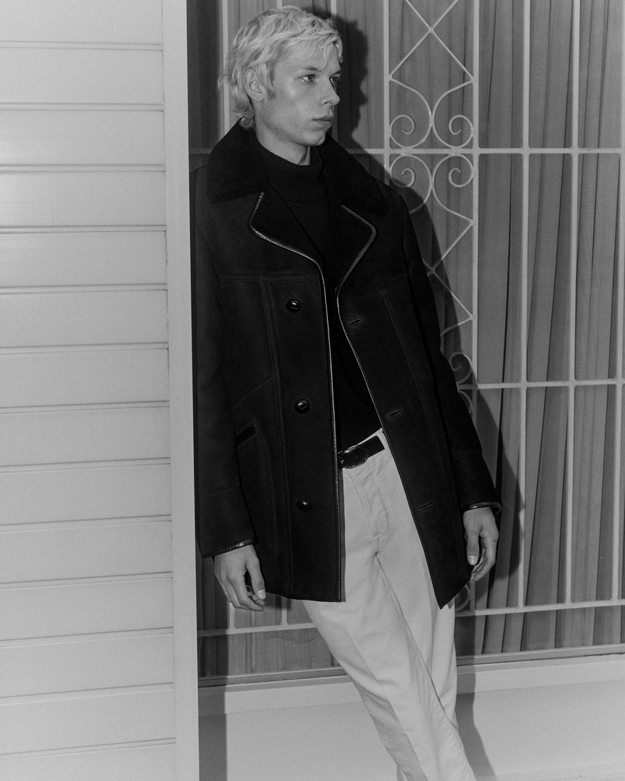 The collection boasts an impressive array of 36 exquisite ready-to-wear pieces, complemented by three meticulously crafted shoes, three stylish ties, and one luxurious scarf, all of which exude the iconic TOM FORD essence. Standout pieces include the irresistibly handsome black leather and shearling peacoats, the sensational shearling-collar flight jacket, the mesmerizing psychedelic swirl tuxedo jackets, the dapper gingham blazer, the captivating black and white micro design suit, and the indulgent mohair silk roll neck knitwear.