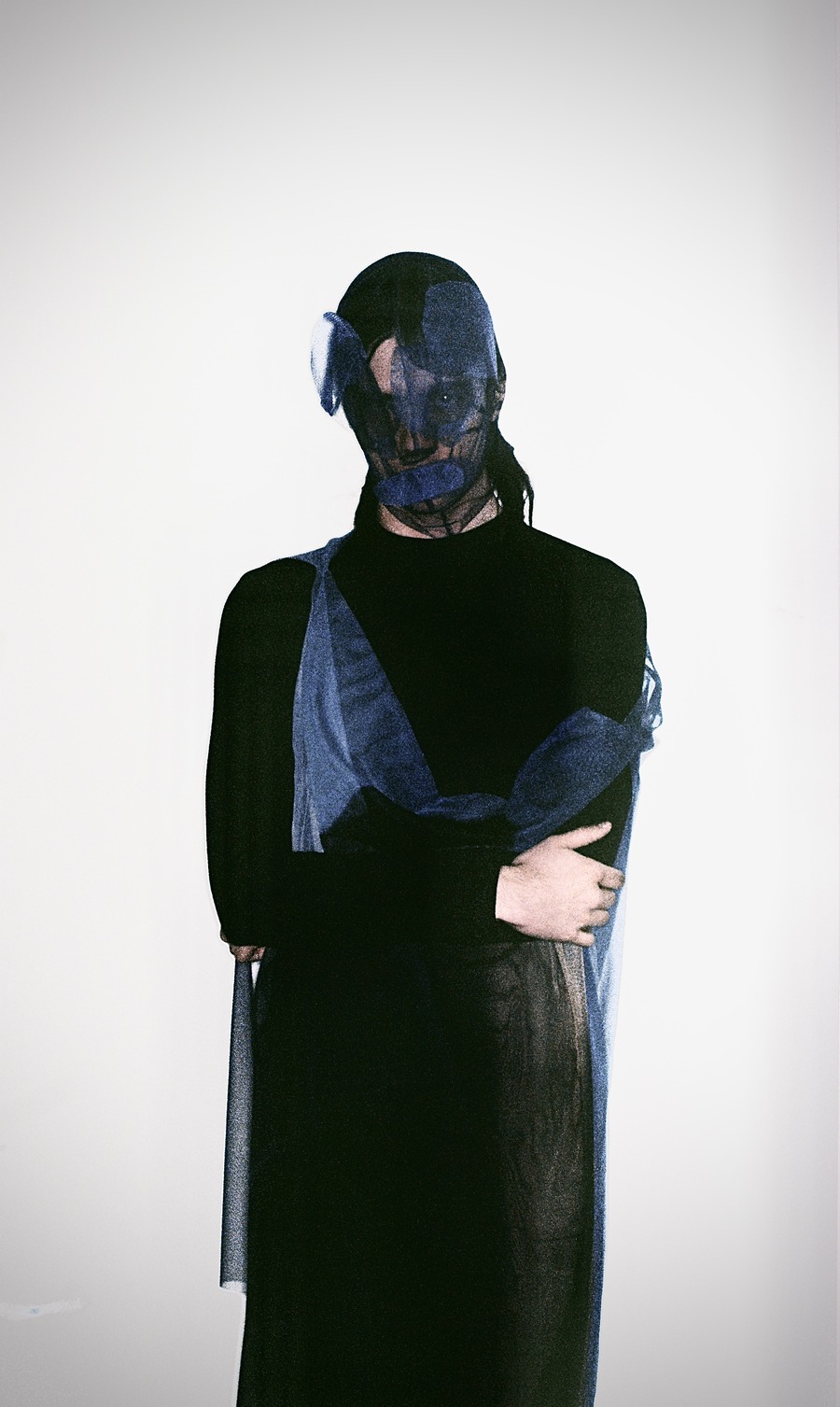The collection itself was a rich tapestry of sophisticated tulle layers, elevated collars, and intricate textile prints—all echoing the theme of multiplicity. Yet, it was Schuler’s audacious presentation that truly captivated me. Models shrouded in expressive, embroidered tulle masks carried these prints as living artworks, circulating through an emotional and surreal realm that blurred the lines between visibility and anonymity.