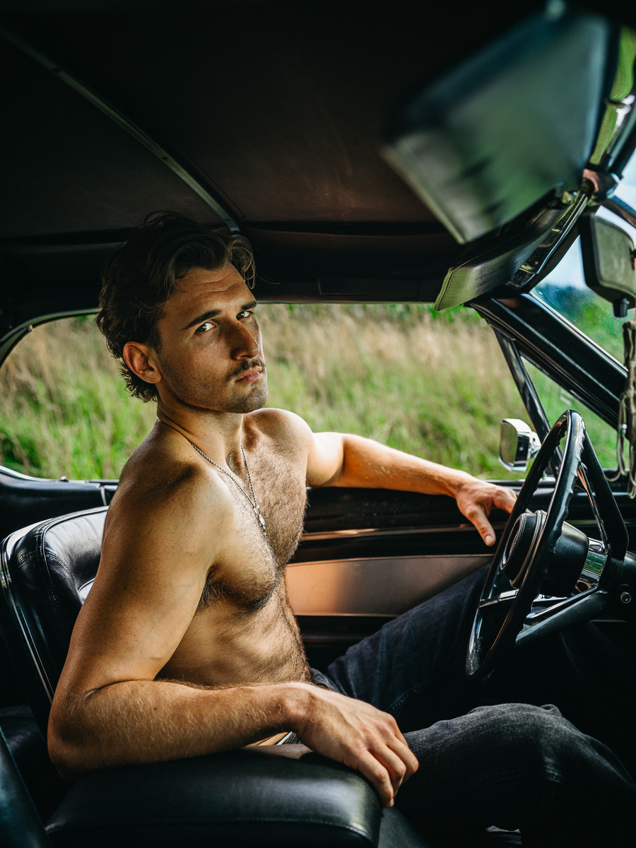 A KALTBLUT exclusive. The model is Riri Arena. Photography by Pancho Assoluto, a visual storyteller and photographer • based in Germany. Fashion items by Calvin Klein, Zara and Wrangler. The car is a Ford Mustang 1967.