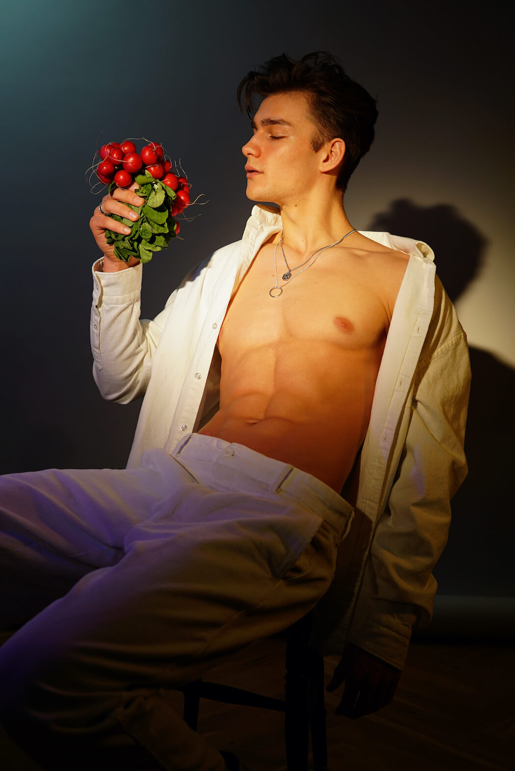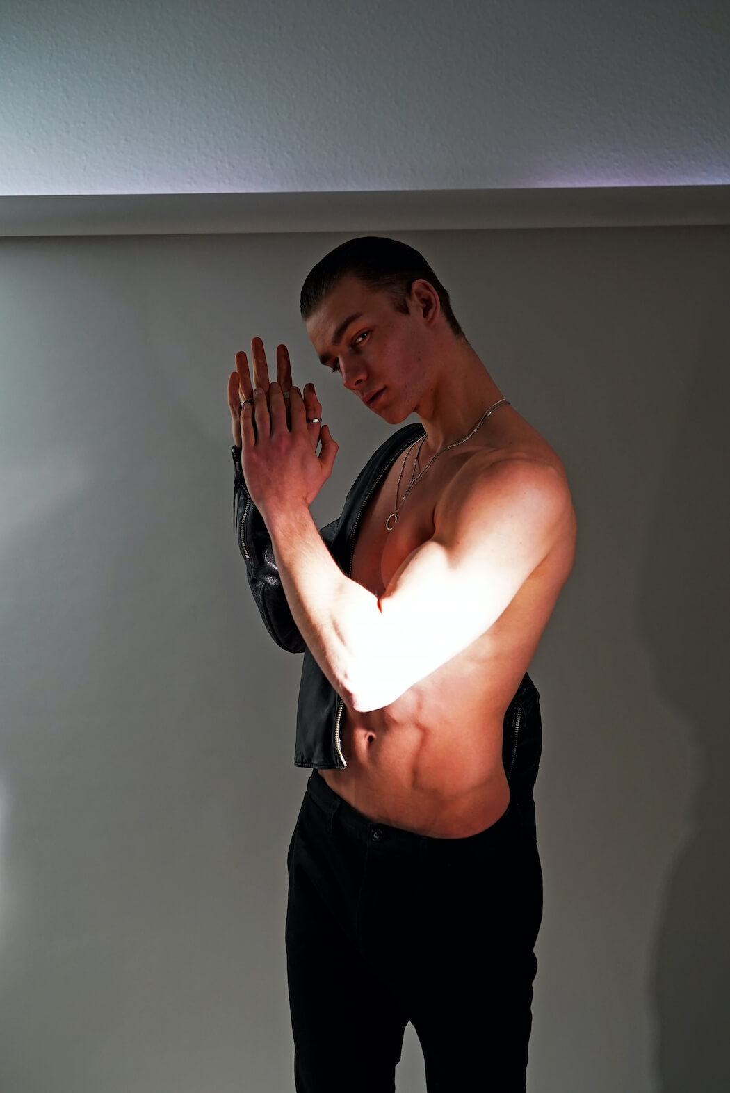Photographer Ron Flieger captured male model Luca Heubl for a KALTBLUT exclusive editorial. Make up by Bee Westmeyer. Grooming by Johannes at the blade.berlin.
