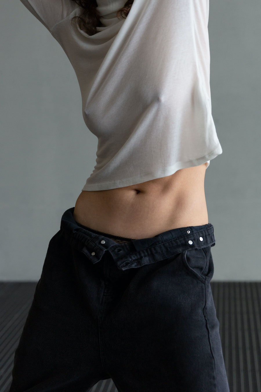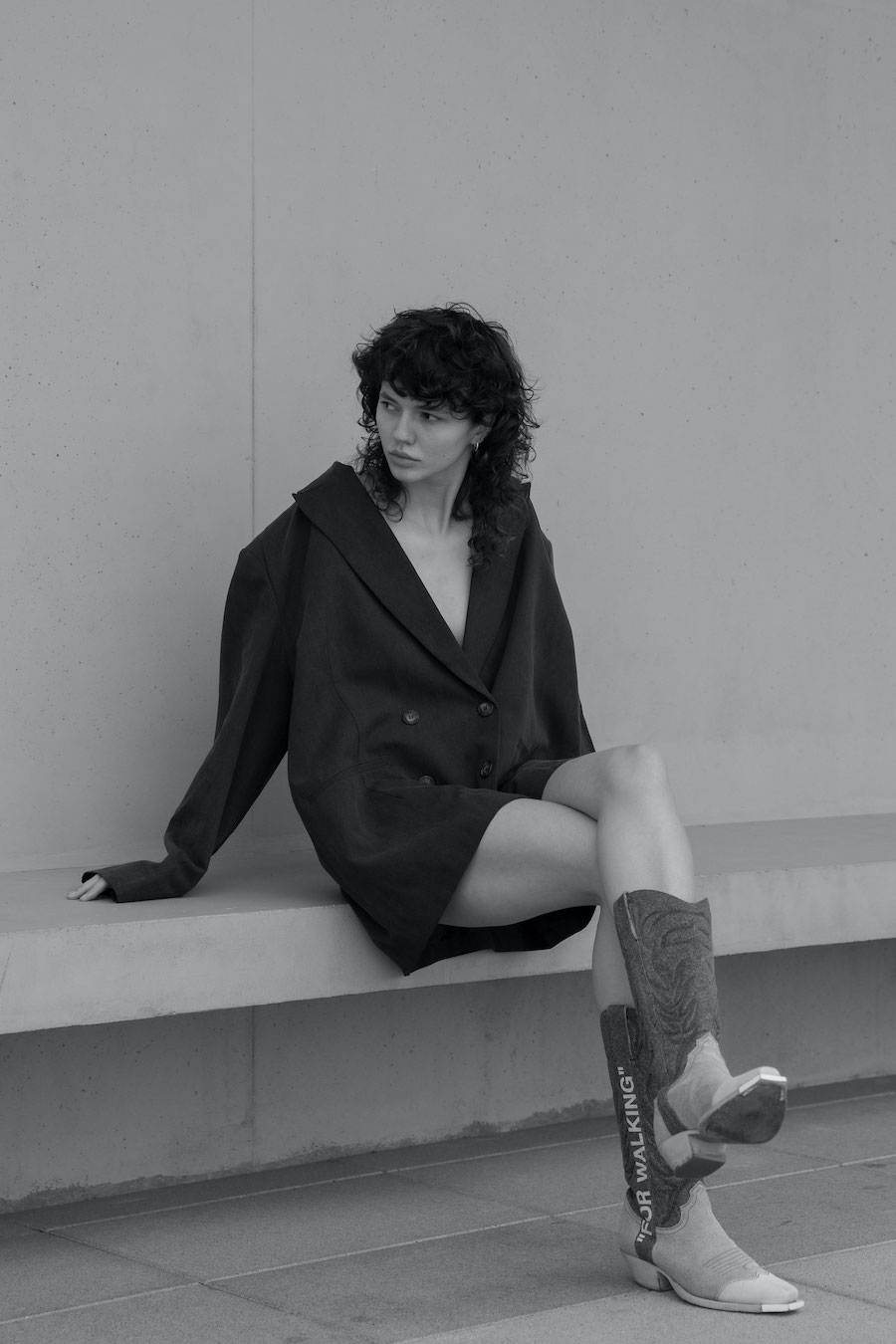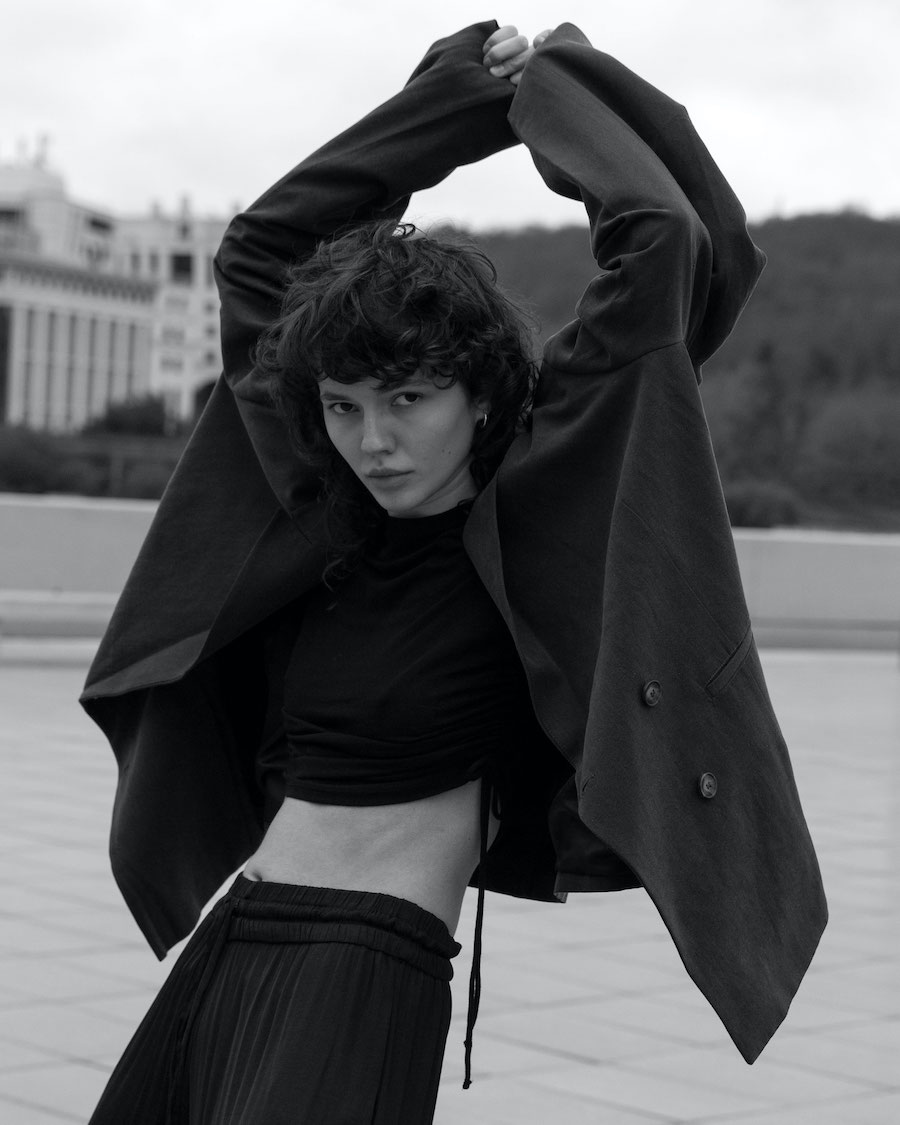 A KALTBLUT exclusive. Photography and creative direction by Chloé Le Reste. The model is Naina Tribunskaya signed at Titanium Management. Fashion by Harley-Davidson, H&M, Mango, Off-White, Ushatava, and Zara.
