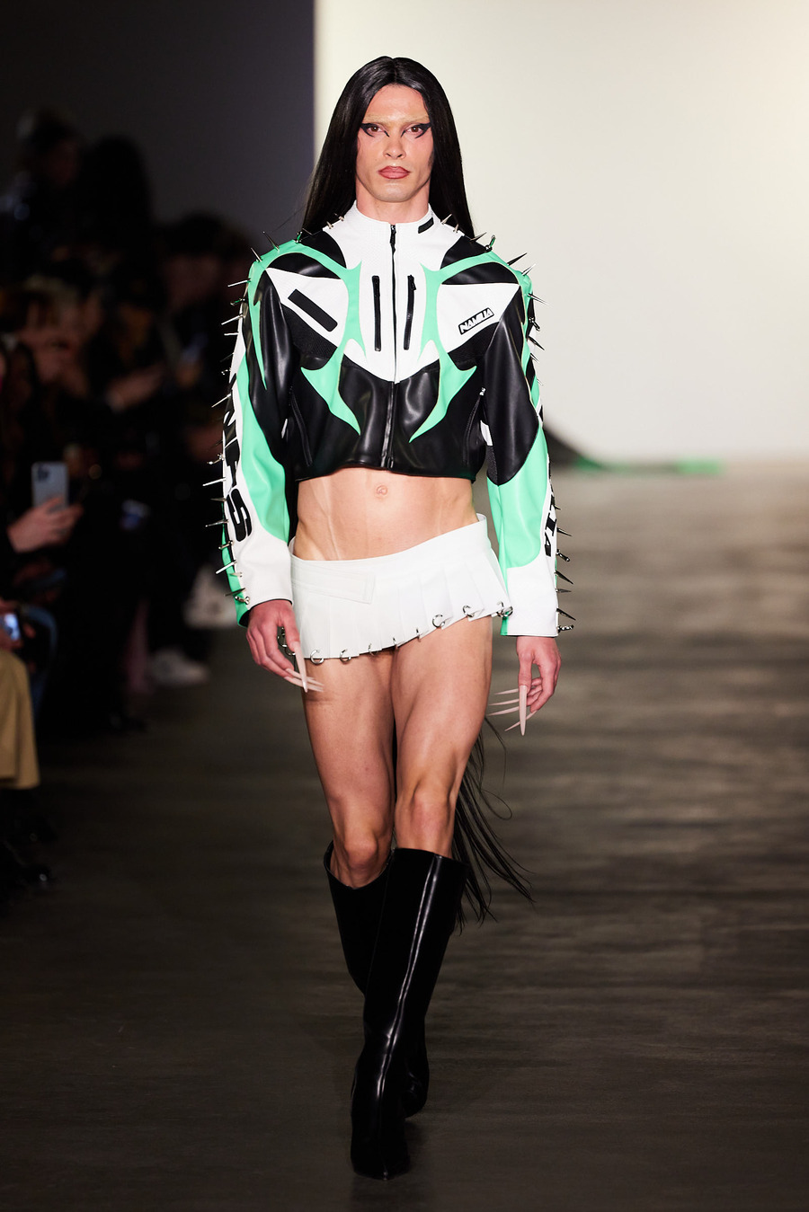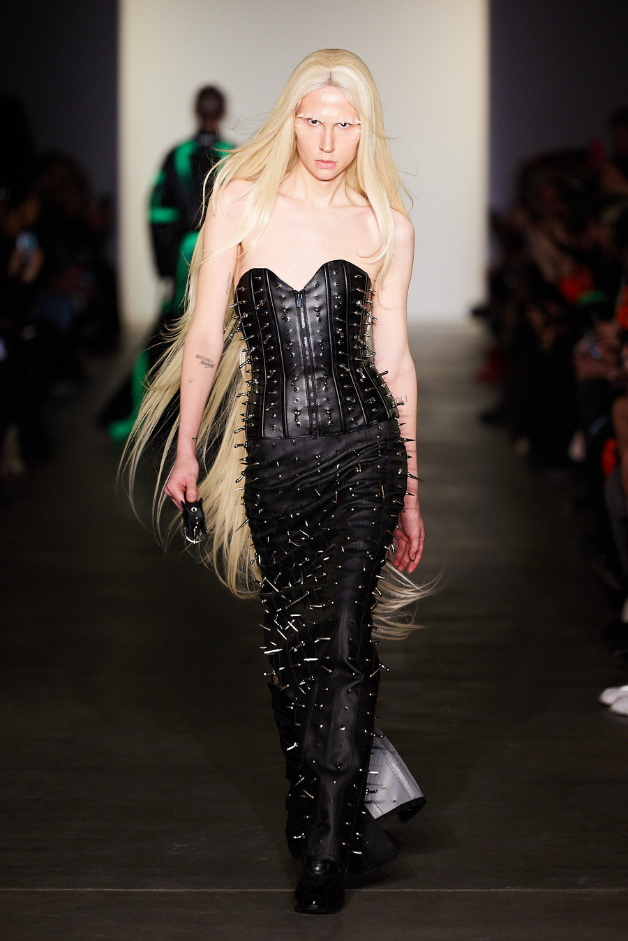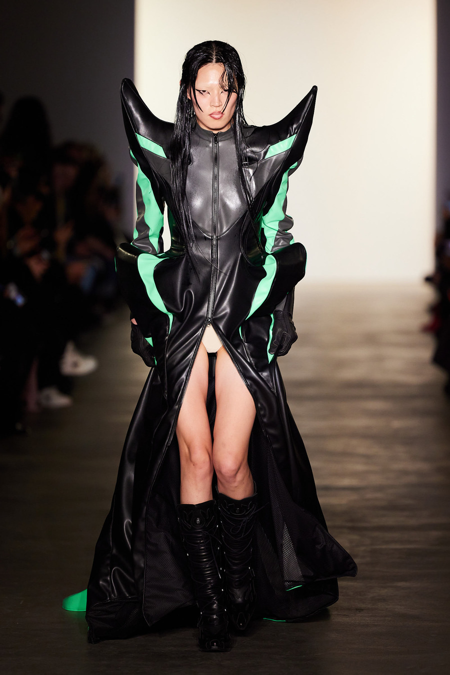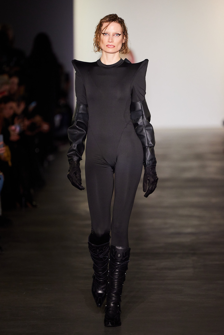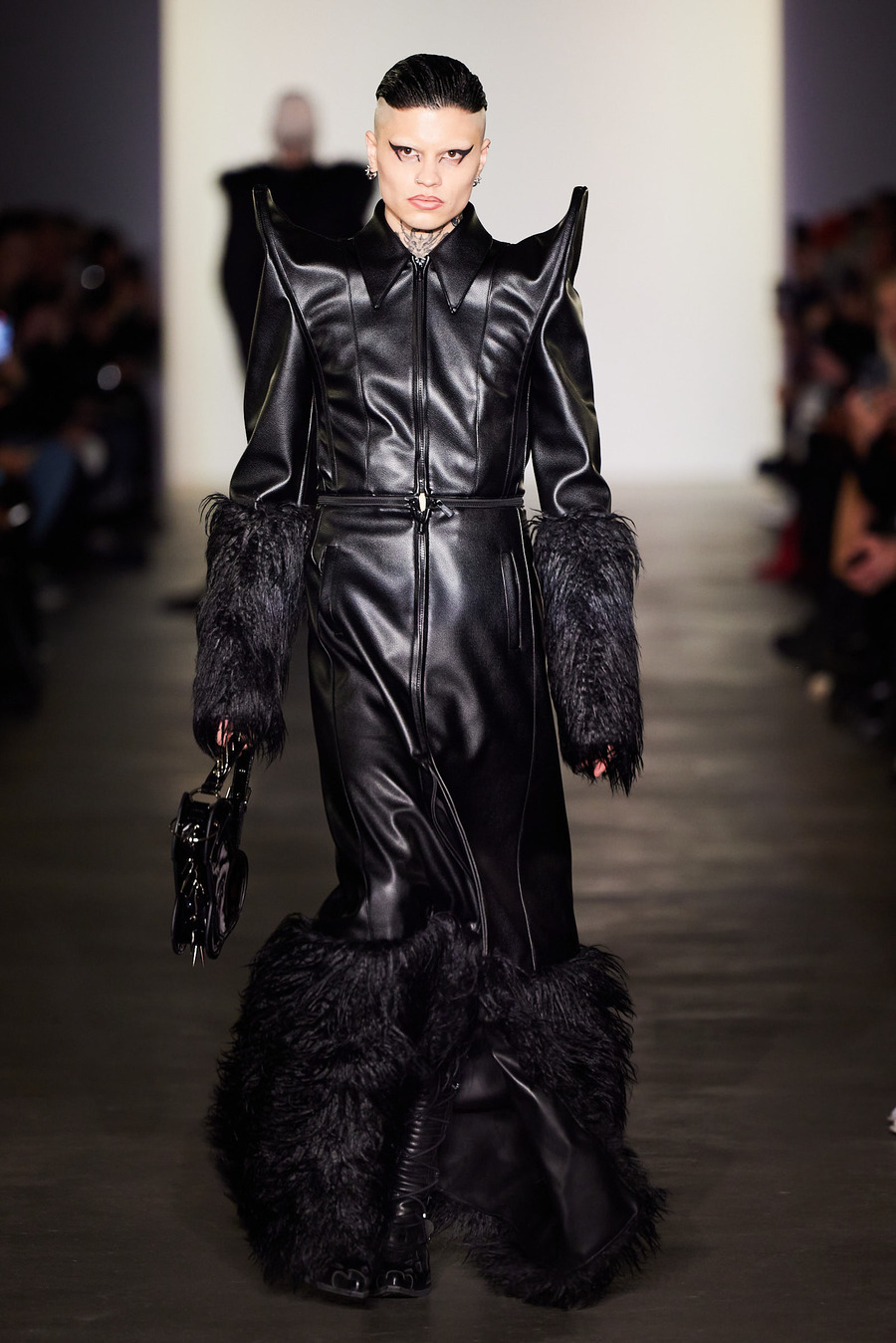 There are also gothic and punk details, such as pointed shoulders, spikes or rivets. In addition to vegan leather, stretch mesh and faux fur, the designers use various high-tech materials known from performance sportswear. Their goal: is to create functional and resilient fashion for eternity.