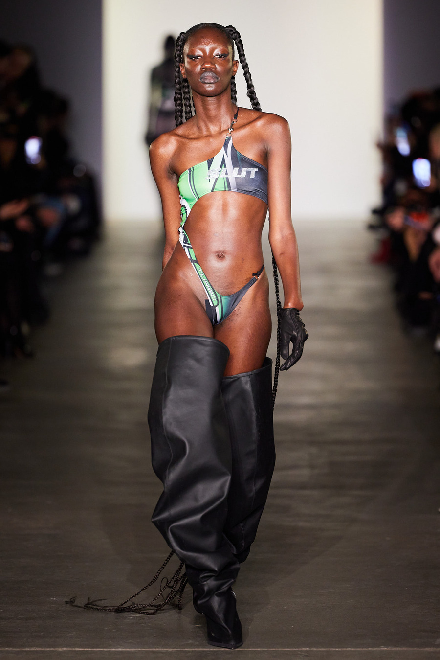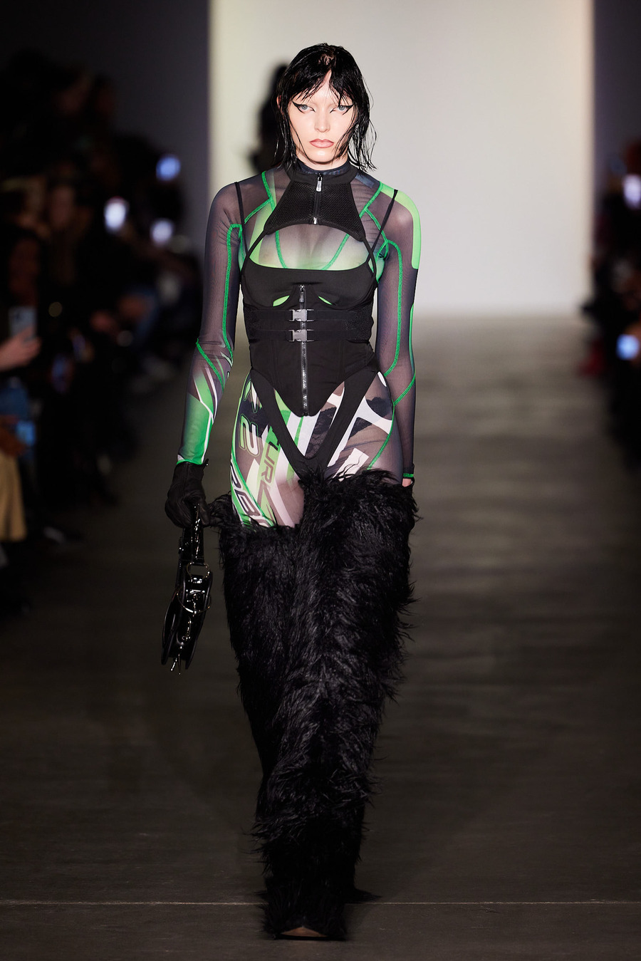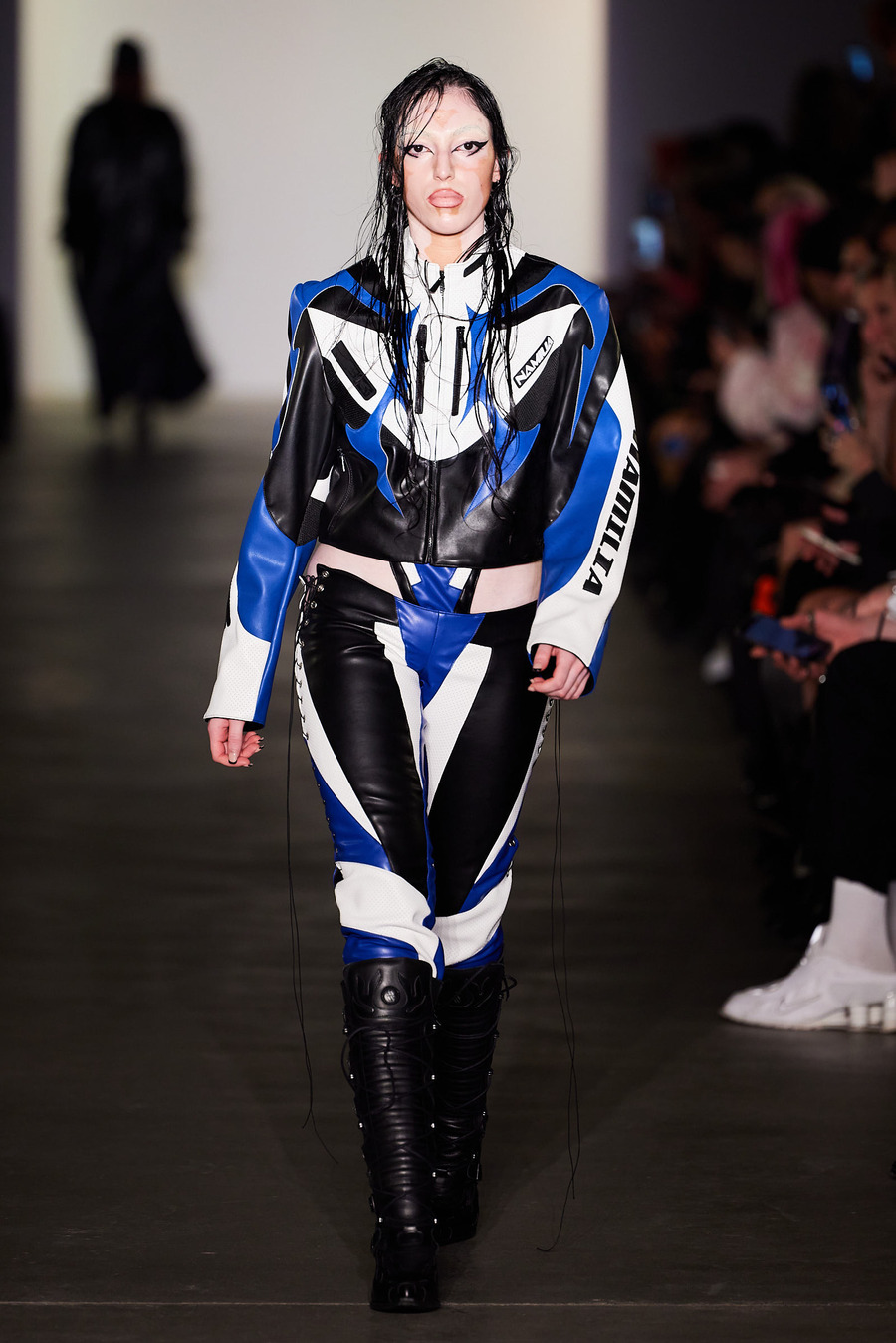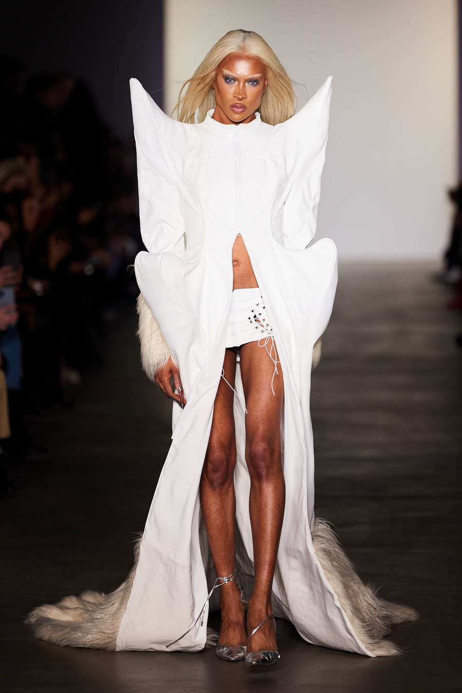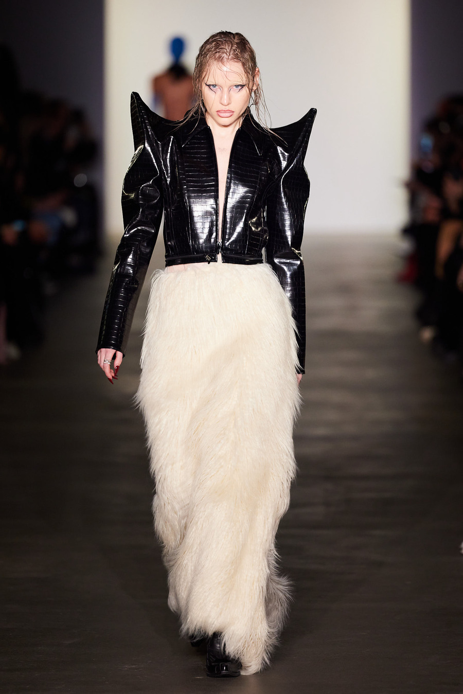 There are also gothic and punk details, such as pointed shoulders, spikes or rivets. In addition to vegan leather, stretch mesh and faux fur, the designers use various high-tech materials known from performance sportswear. Their goal: is to create functional and resilient fashion for eternity.