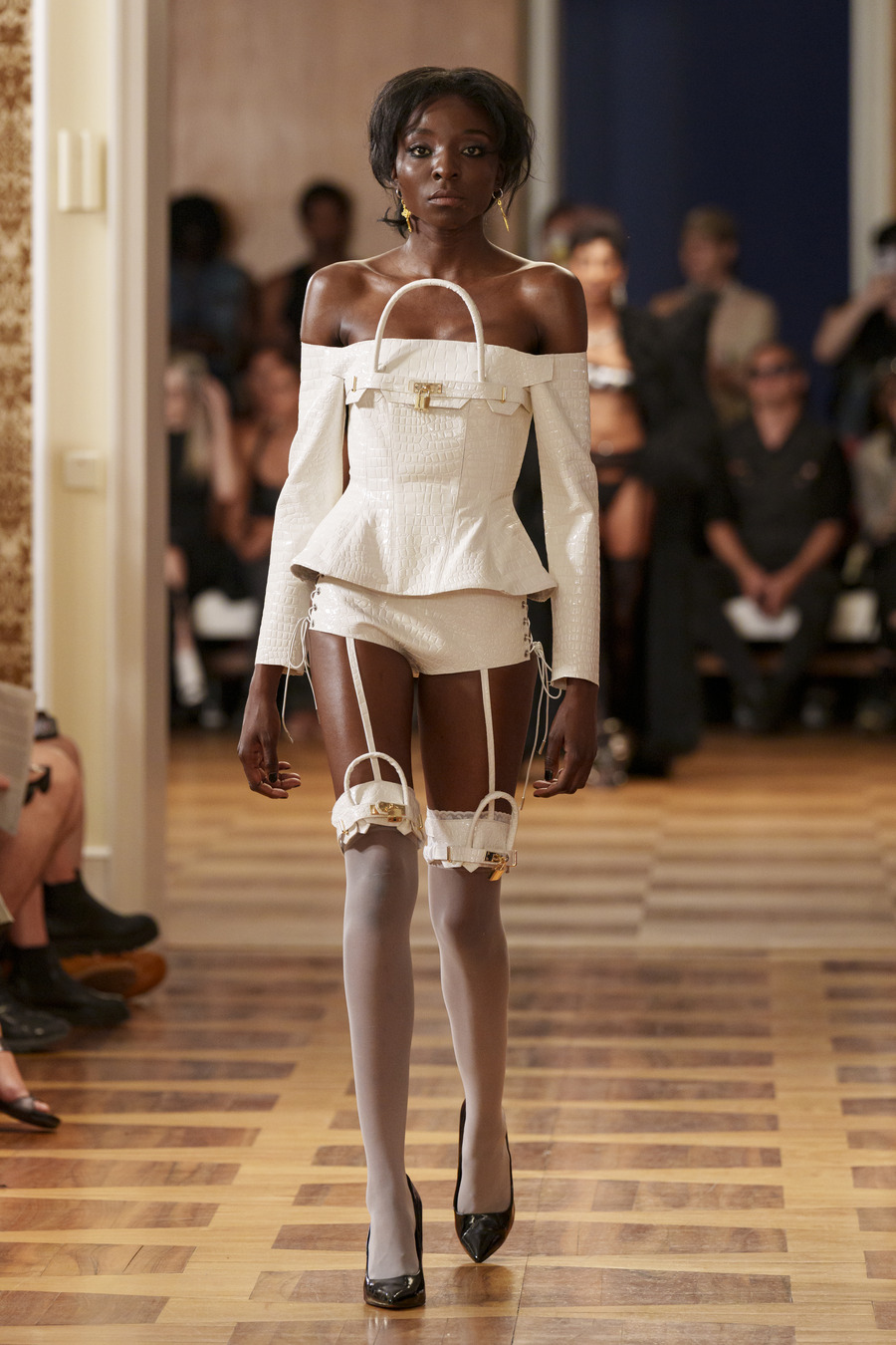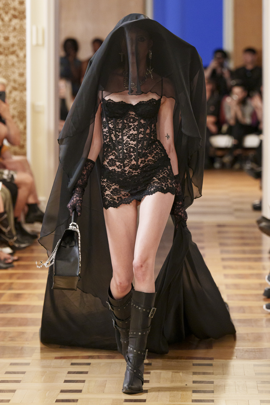 For this collection, the duo finds inspiration in the designs of iconic couturiers such as Cristobal Balenciaga and Christian Dior. By infusing unexpected elements like lingerie, heavy metal merchandise, and status symbol handbags, Namilia showcases its signature eclectic attitude in over 50 breathtaking silhouettes.