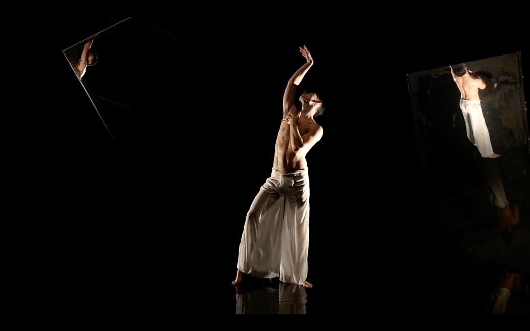 NARCISO’ is a contemporary interpretation of the Greek mythological story ‘Narciso’, which explores the three stages of narcissism depicted within the text; vanity, ecstasy, and tragedy. Using the body as means of expression, each movement, gesture, and physical articulation conveys the dynamic of the character’s feelings, changing throughout his own exploration of narcissism. Falling deeper and deeper into compulsion, insanity, and soon, his untimely death, the character is triggered by the constant reflection of his image refracted through the mirrors and water beneath him. The changes between each stage and feeling are prompted by shifts within the sound design, creating an atmospheric sense of intimacy between the character, stage, and story. The music further develops into a strange, eerie, and somewhat cynical melody, illustrating the characters’ mentality through sound.