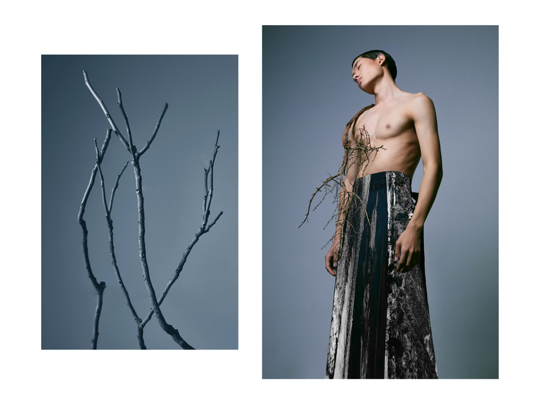 A KALTBLUT exclusive. The Editorial is inspired by F/FFFFFF 2019SS collection & ancient Greek myth narcissus and echo. Creative Direction by Minsoo Kim. Photographer Stammy Wu captured James An from ESEE Model Management and Minsoo Kim. Makeup by Elizabeth Marriott. Hair by Elnur Khankishiev. Floral Designer is Daria Bokova.