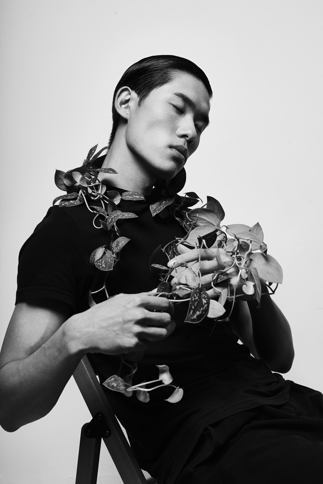 A KALTBLUT exclusive. The Editorial is inspired by F/FFFFFF 2019SS collection & ancient Greek myth narcissus and echo. Creative Direction by Minsoo Kim. Photographer Stammy Wu captured James An from ESEE Model Management and Minsoo Kim. Makeup by Elizabeth Marriott. Hair by Elnur Khankishiev. Floral Designer is Daria Bokova.