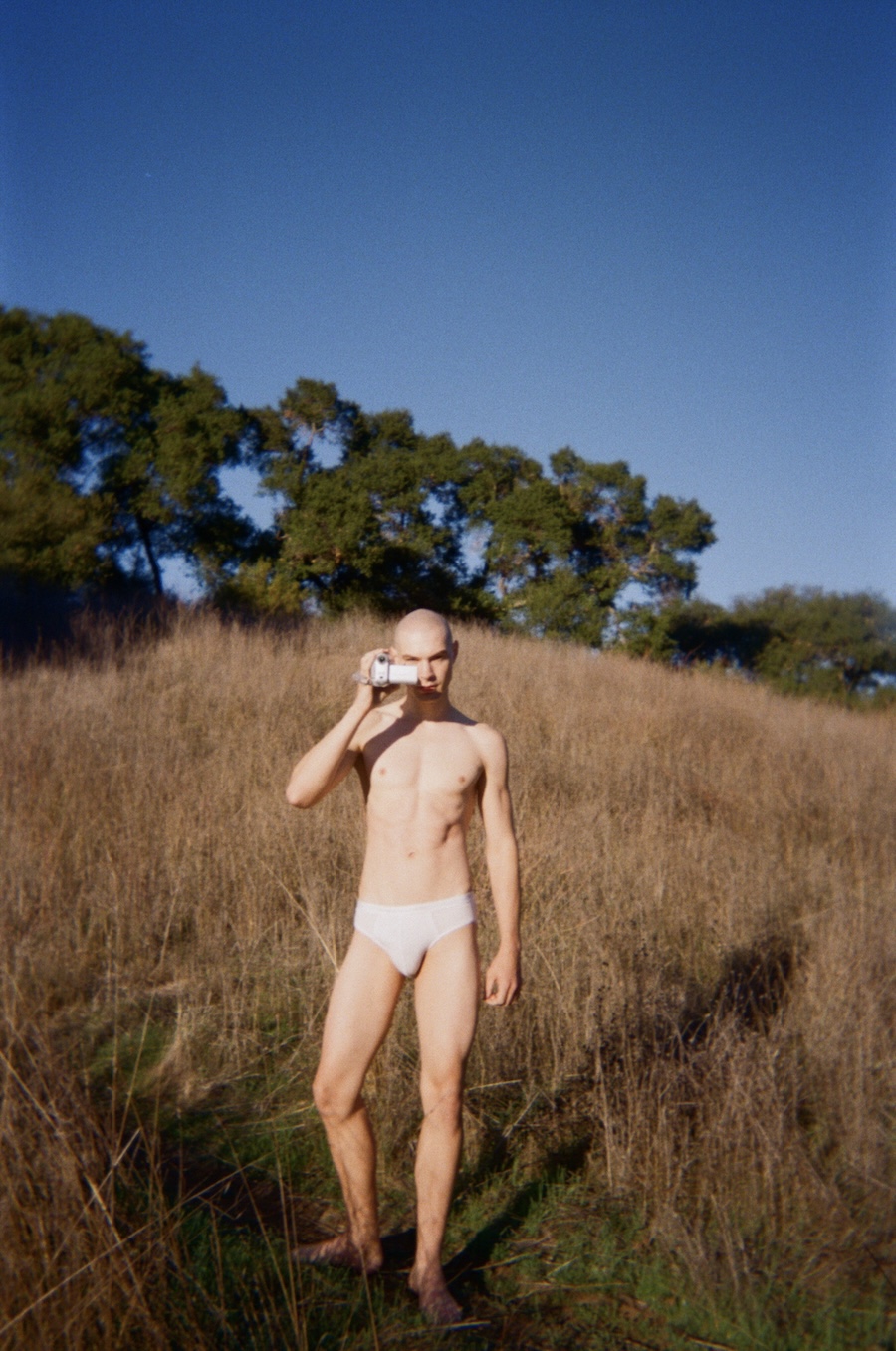 Shot on film and Polaroid in Malibu, Nature Boy pulls inspiration from Juergen Teller’s Go-Sees and Bruce Weber’s Bear Pond, documenting the intersection of solitude and identity, where nature becomes both setting and collaborator. Pieces from Albano’s underwear line are re-photographed in a new context, exploring the tension between play, self, and exposure.