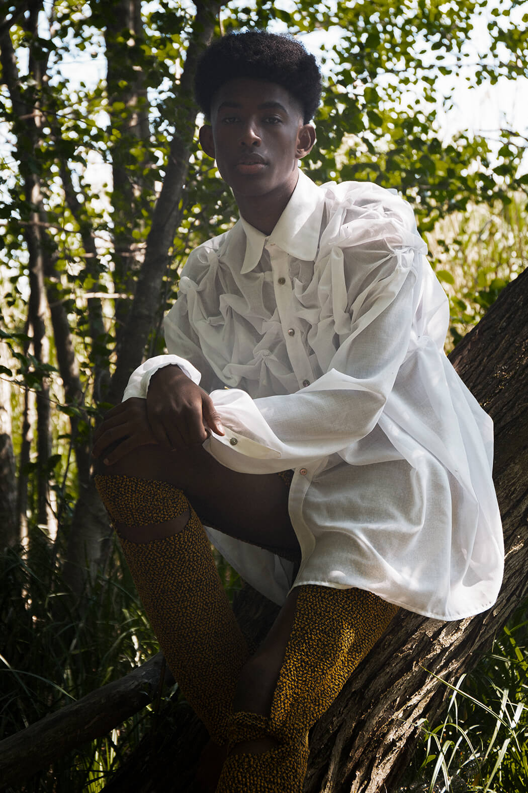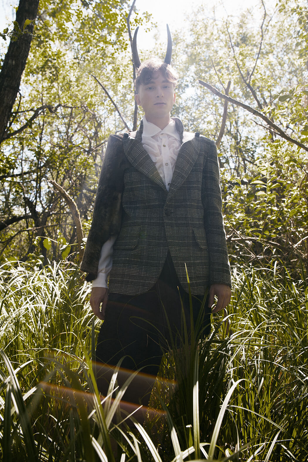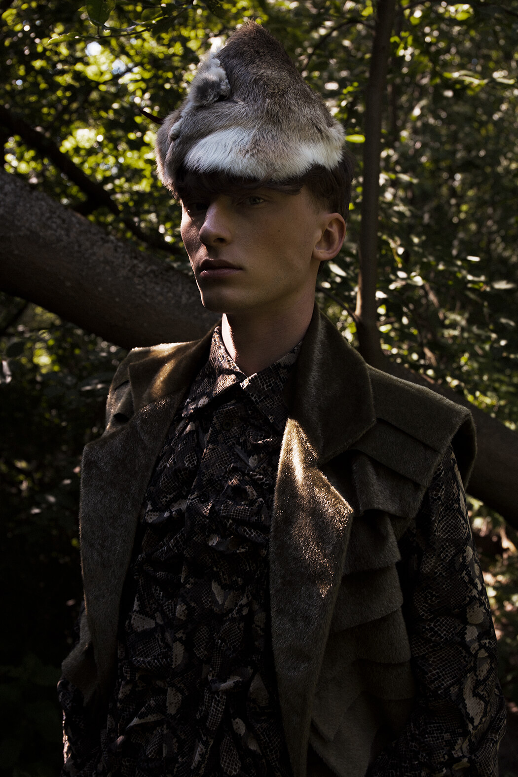 ”Nature Boy” is a collection inspired by the organic way nature grows and create shapes – nonsensical but yet full of precision. Garments are created by draping and moulding fabric directly on the body and classic tailoring is implemented to cause tension between man and vegetation.