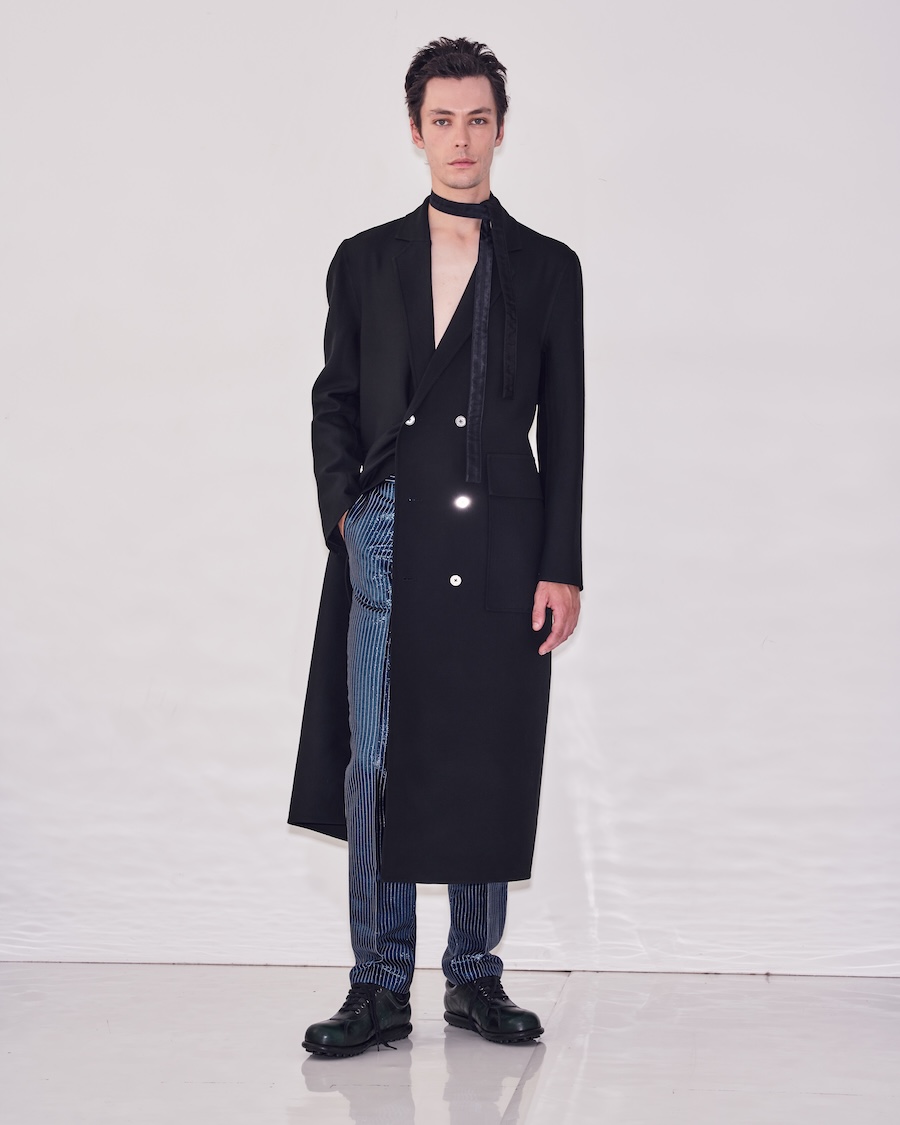 Draped and structured fabrics coexist harmoniously, creating silhouettes that feel both instinctively familiar and steeped in intentional design. Shapes emerge from within other shapes, weaving a rich tapestry of framing and concealment. Furthermore, tailoring techniques traditionally reserved for garments are reimagined for accessories, while trompe-l’œil pinstripe panels echo architectural façades, crafting stunning 3D illusions directly into the fabric.