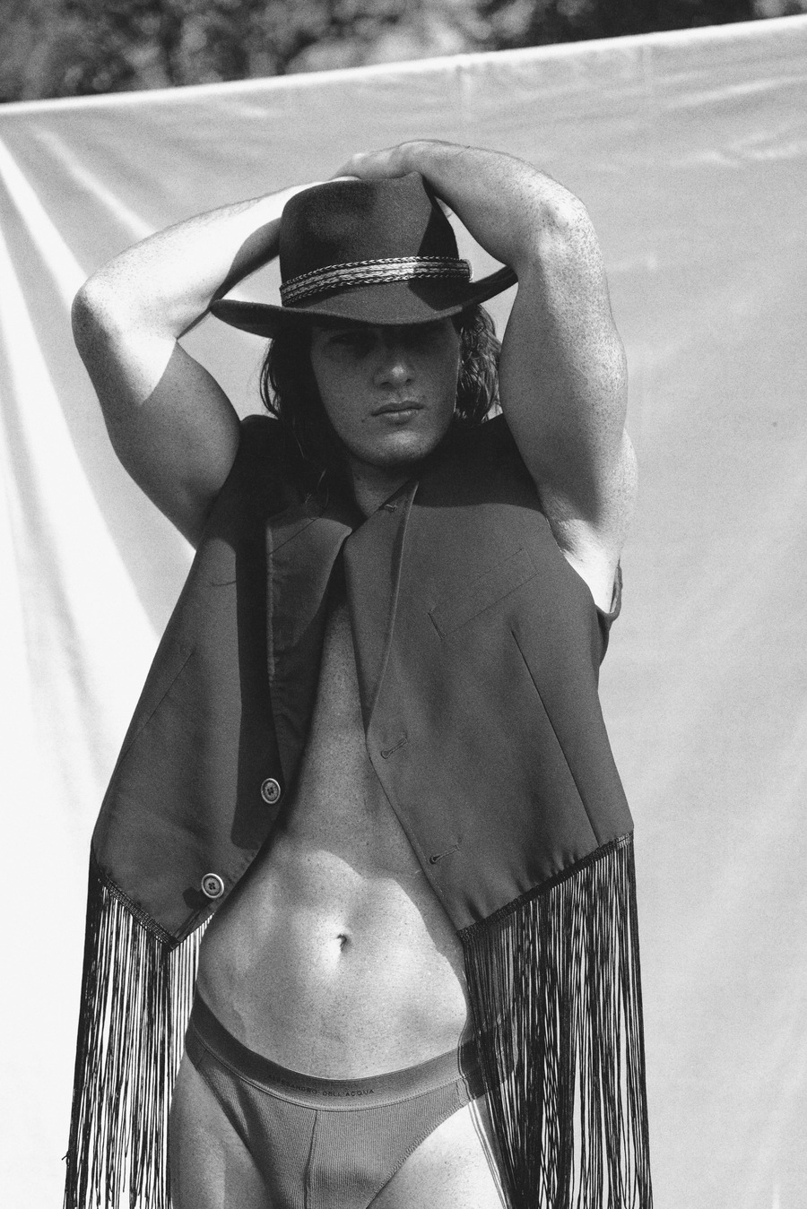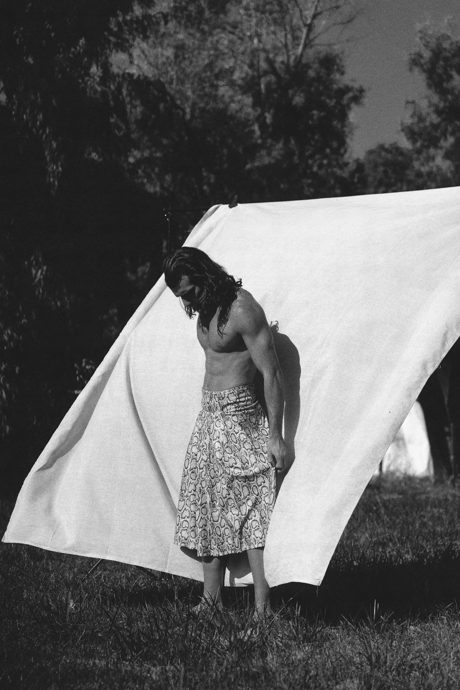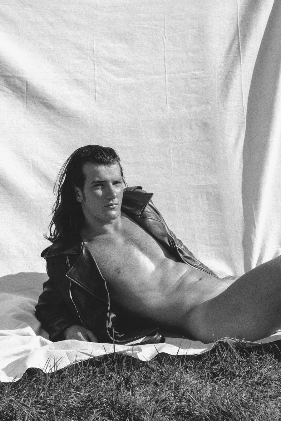 A KALTBLUT exclusive. Photography by Salvatore Diana. The model is Giuseppe Merenda. Styling by Romolo Battista and Ester Cassandra. “The concept revolves around capturing the beauty of male nudity in natural settings, with a visible linen backdrop, creating a sexy and poetic atmosphere. Our aim is to showcase the connection between the human body and the surrounding natural environment, highlighting the allure and sensuality that arises from this juxtaposition.”